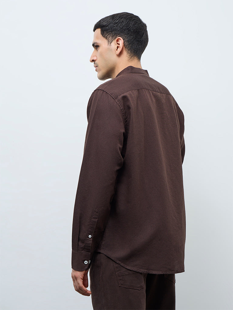 This dark brown shirt from Ascot carries an understated, polished appeal. Cut in a relaxed fit, it is styled with a band neck, a buttoned placket and full sleeves for a clean, composed look. Crafted from a soft lightweight fabric, it delivers breathable comfort throughout the day. An easy essential that blends simplicity with everyday ease.
