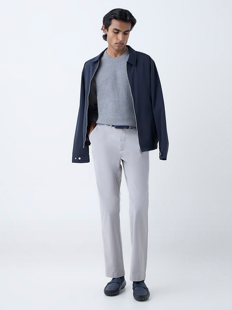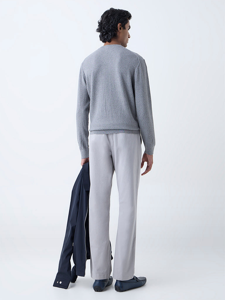 Ascot Grey Knit-Textured Relaxed-Fit Cotton-Blend Sweater