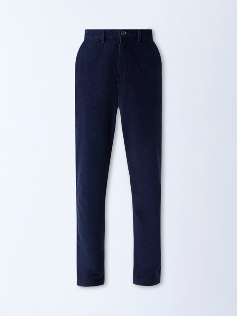 Ascot Navy Relaxed-Fit Mid-Rise Corduroy Trousers