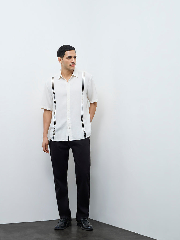 Ascot White Stripe Printed Relaxed-Fit Shirt