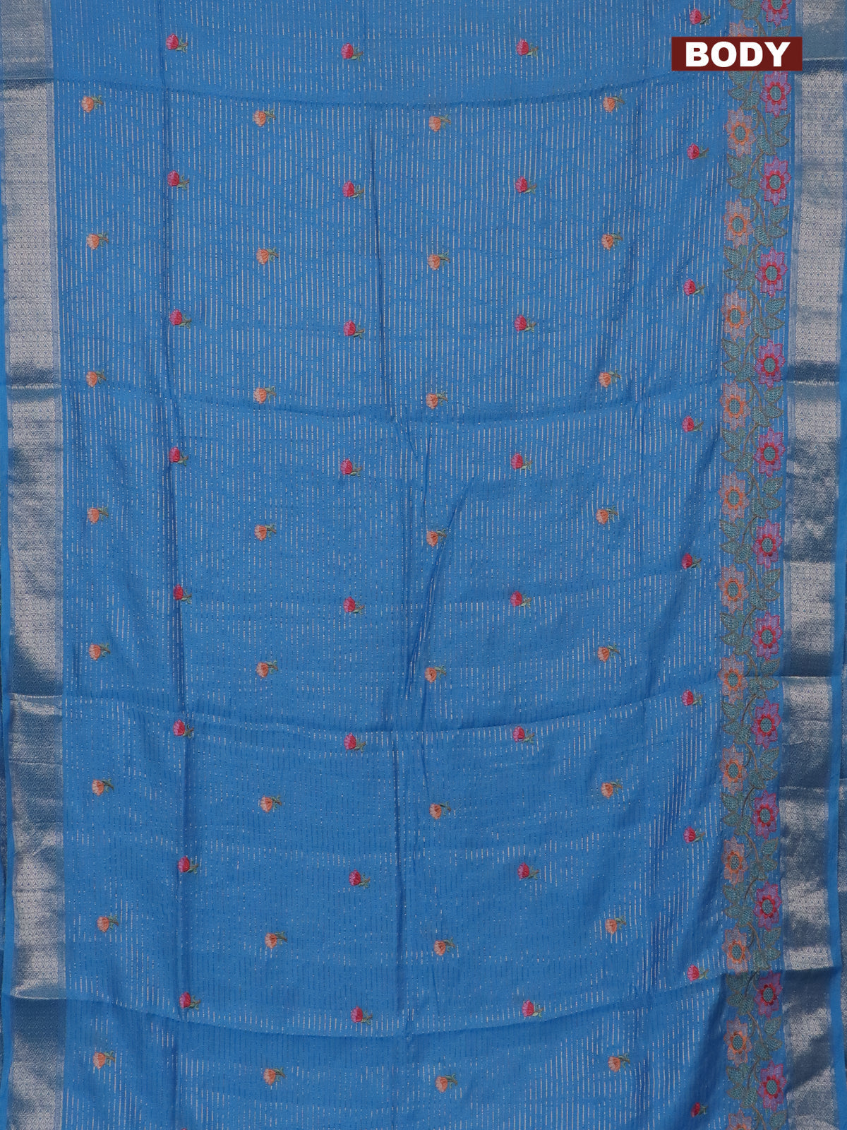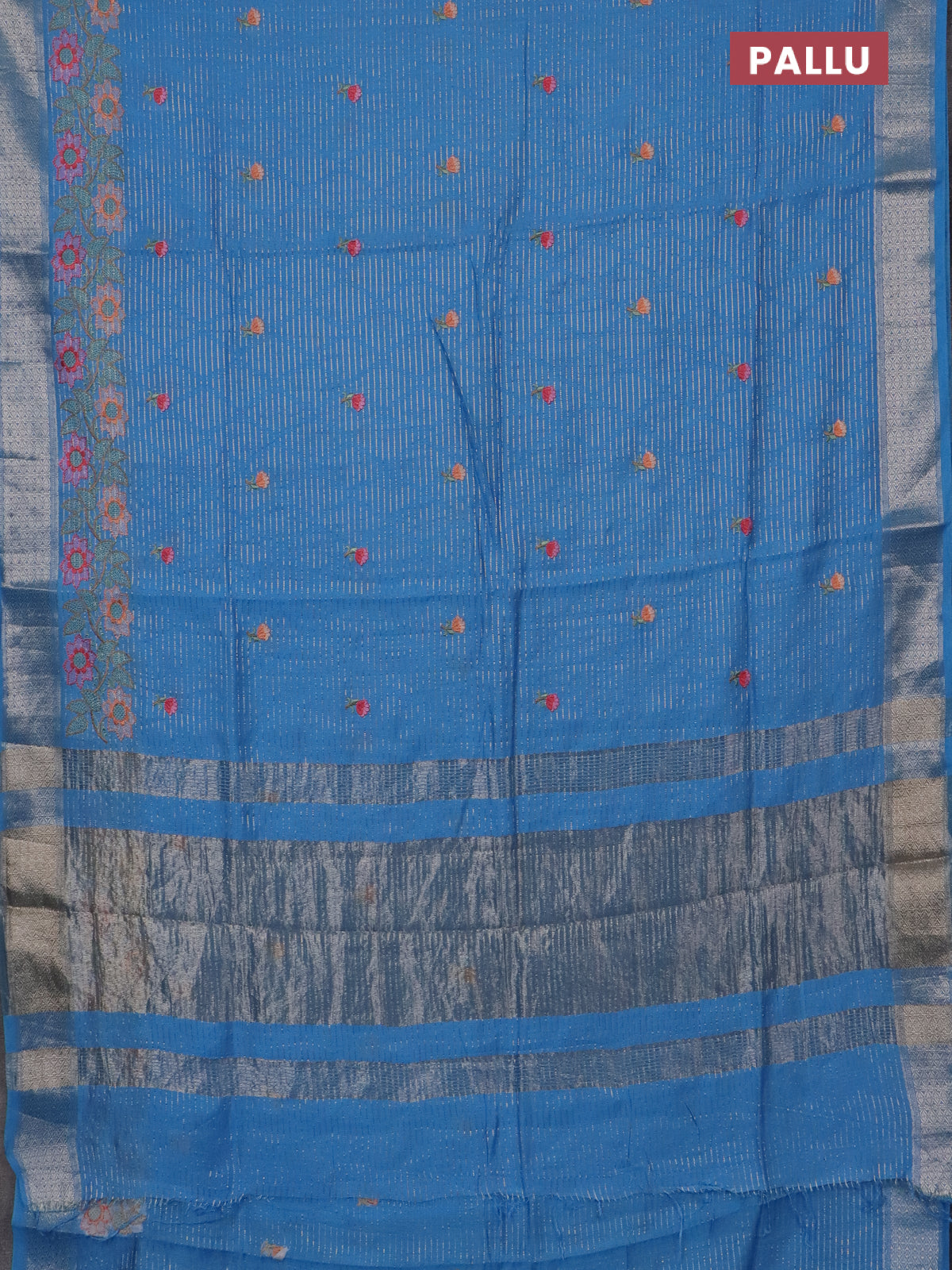 Assam silk saree light blue with allover zari weaves & floral embroidery work buttas and zari woven border