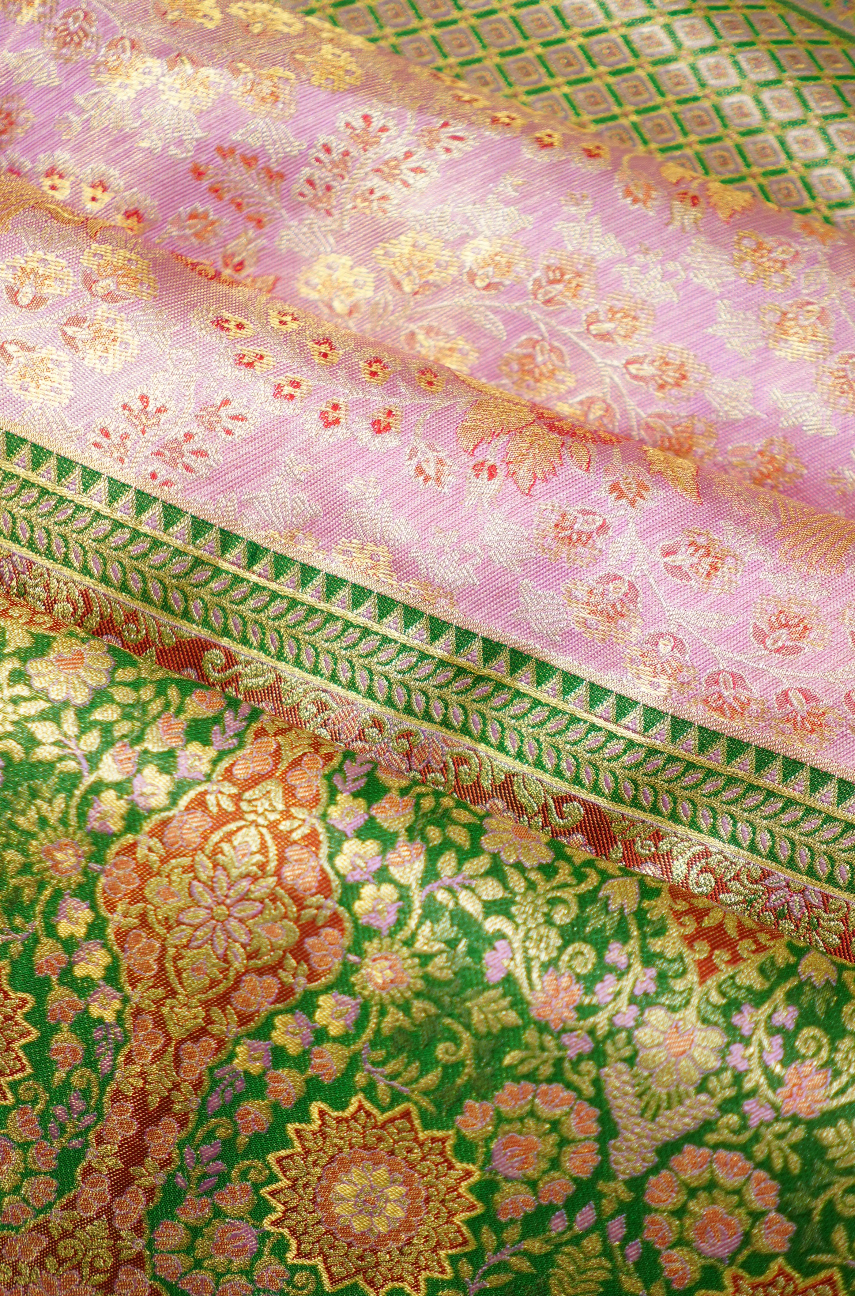 Baby Pink Kanchi Pattu Saree With Green Color Border
