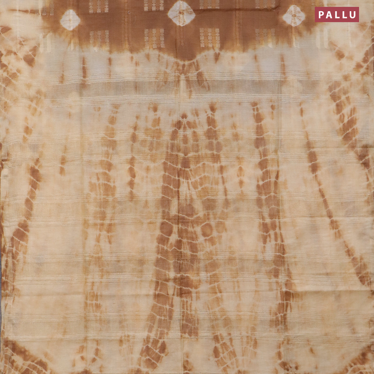 Bamboo saree brown and cream with allover zari woven buttas & batik prints and small zari woven border