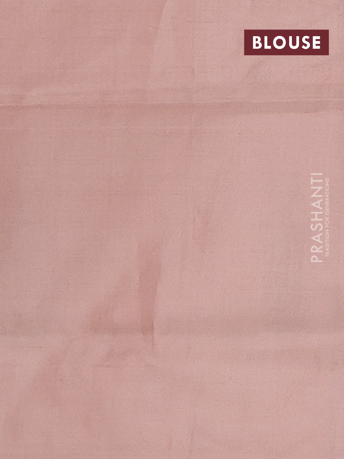 Banana pith saree blue and pastel peach shade with thread woven buttas in borderless style