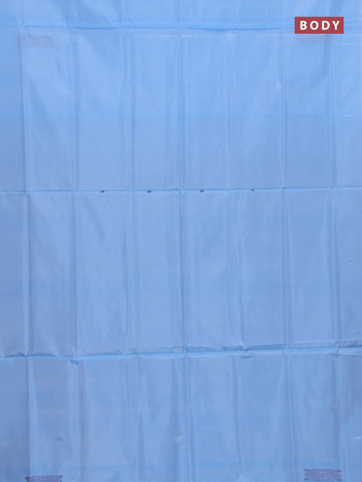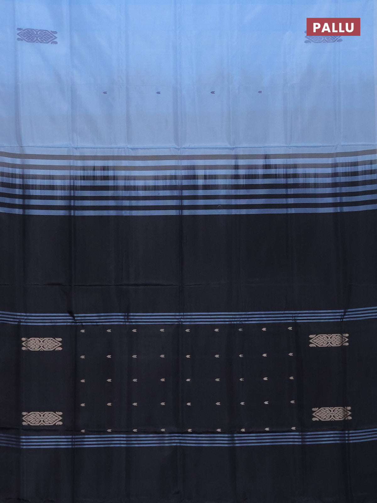 Banana pith saree light blue and black with thread woven buttas in borderless style