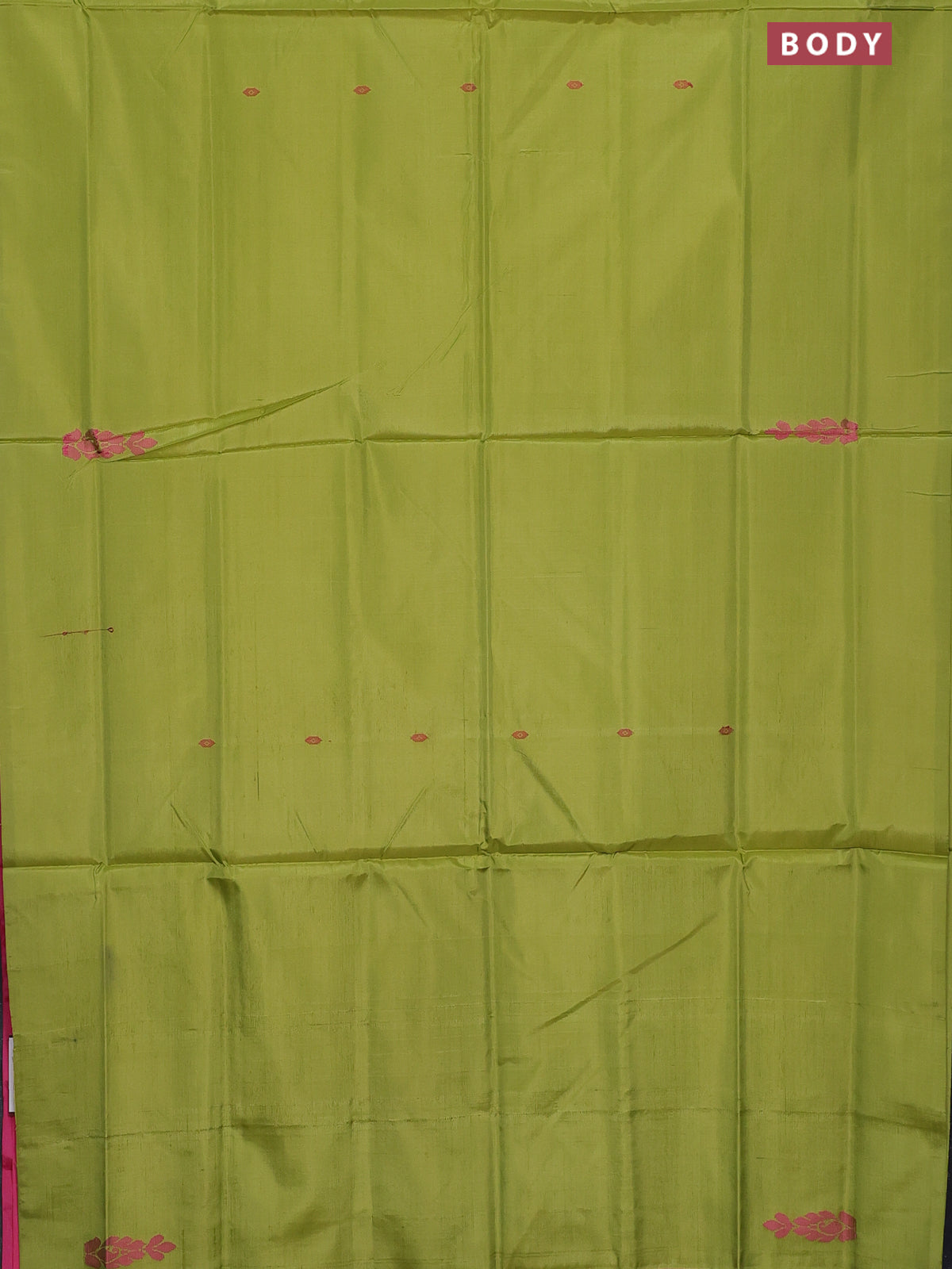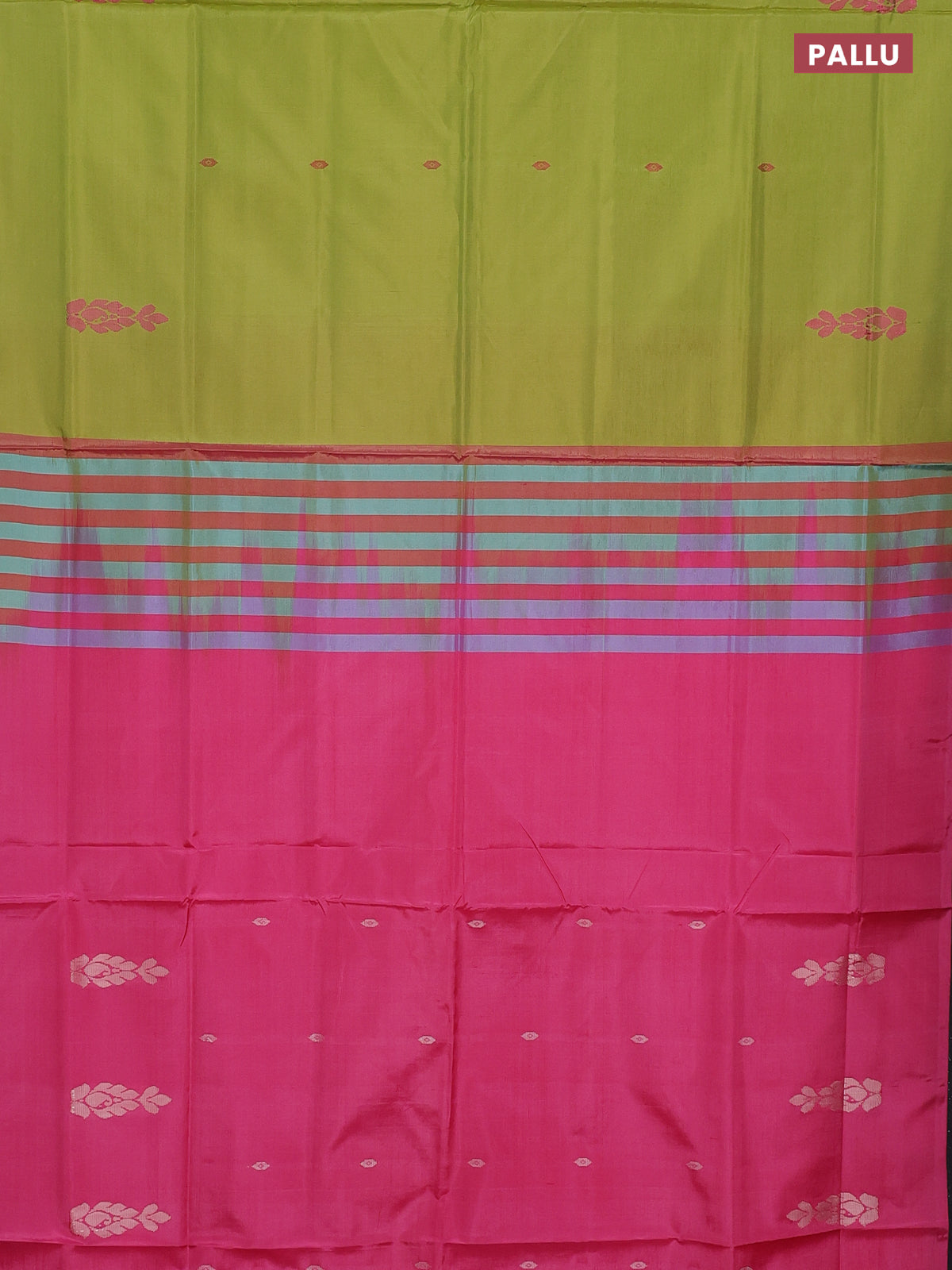 Banana pith saree light green and pink with thread woven buttas in borderless style