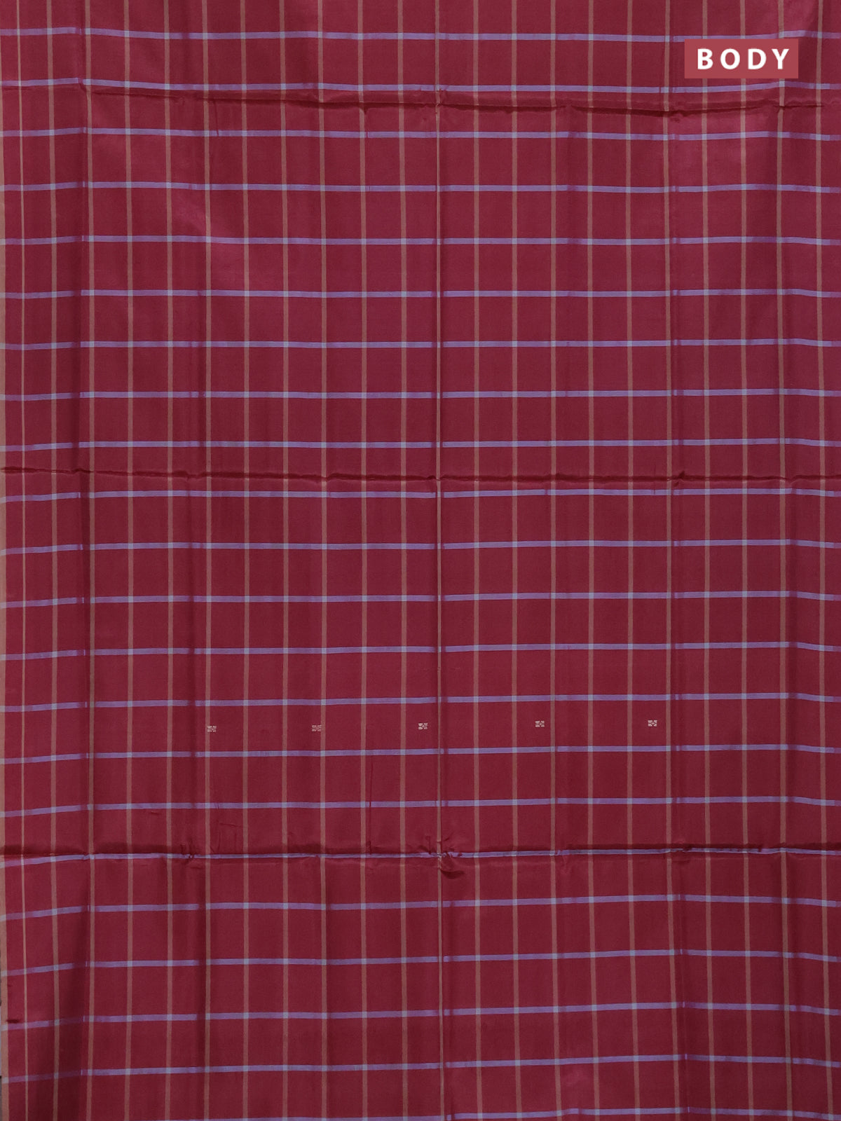 Banana pith saree maroon and dual shade of grey with allover checked pattern and piping border
