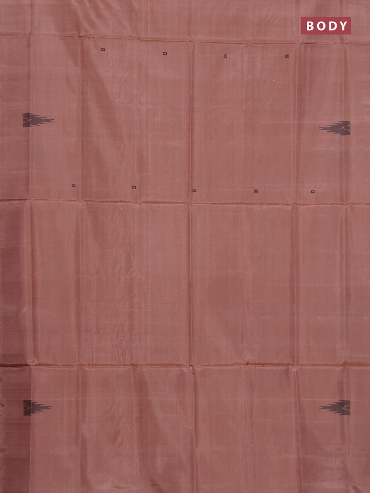 Banana pith saree pastel brown and lavender with thread woven buttas in borderless style