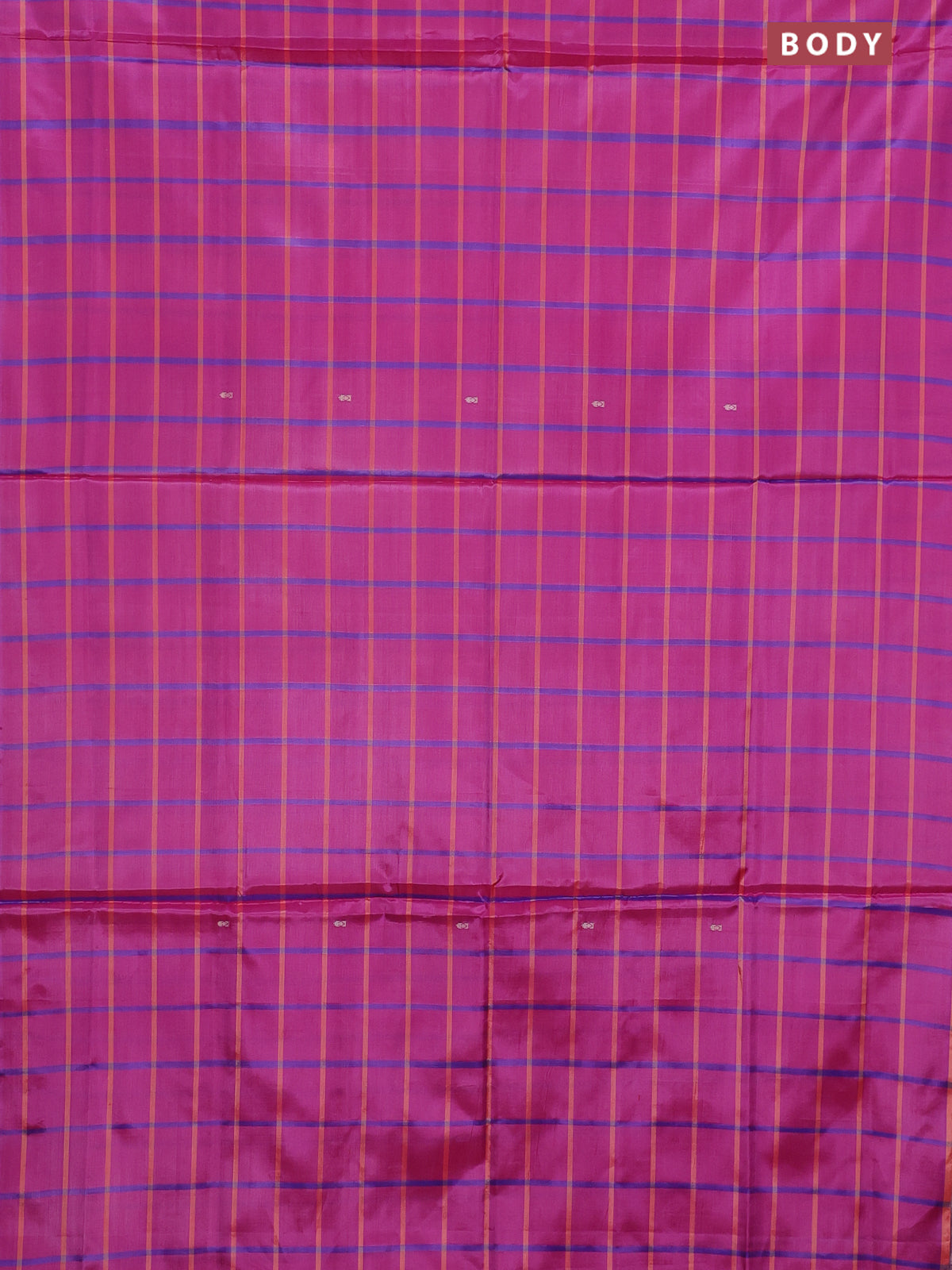 Banana pith saree purple and dual shade of peachish lavender with allover checked pattern and piping border