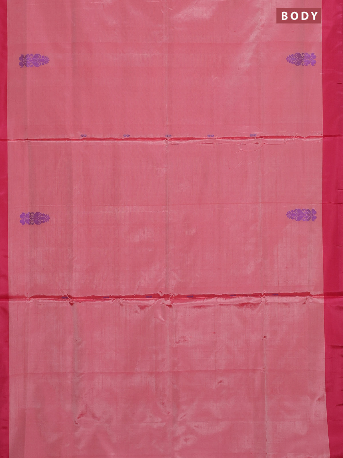 Banana pith saree red and pink with thread woven buttas and contrast border
