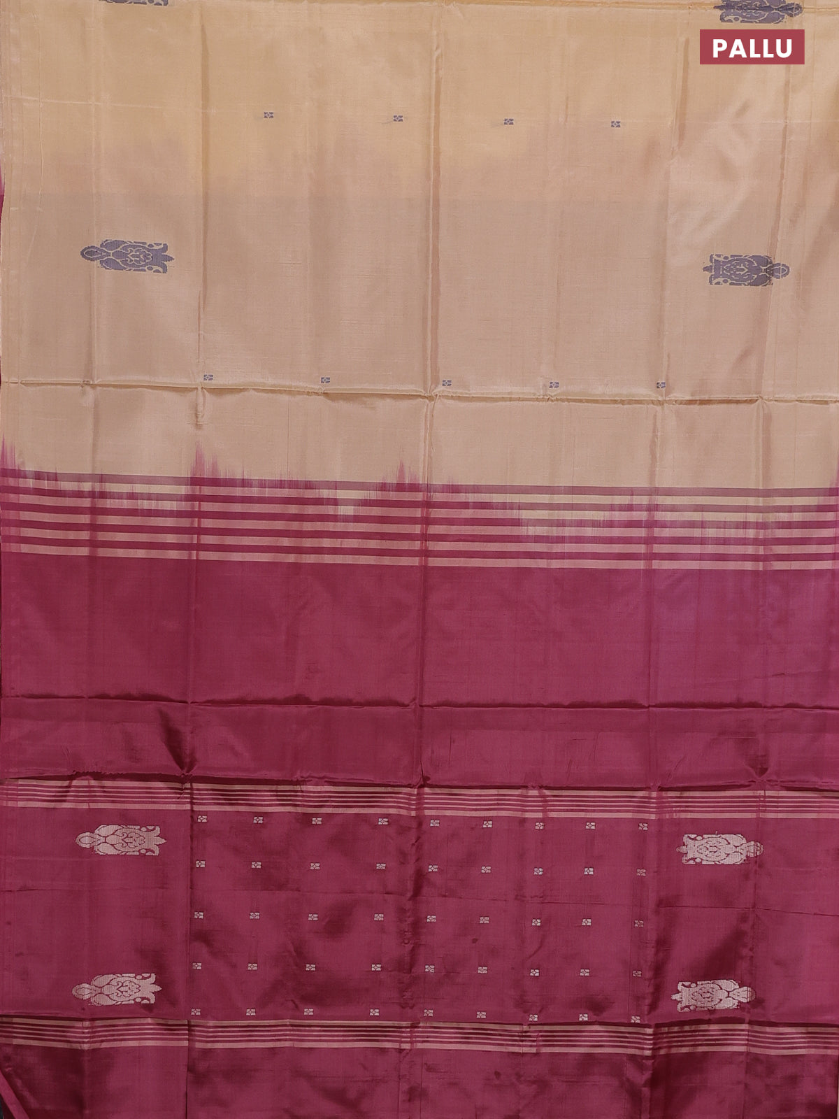 Banana pith saree sandal and deep maroon with thread woven buttas in borderless style