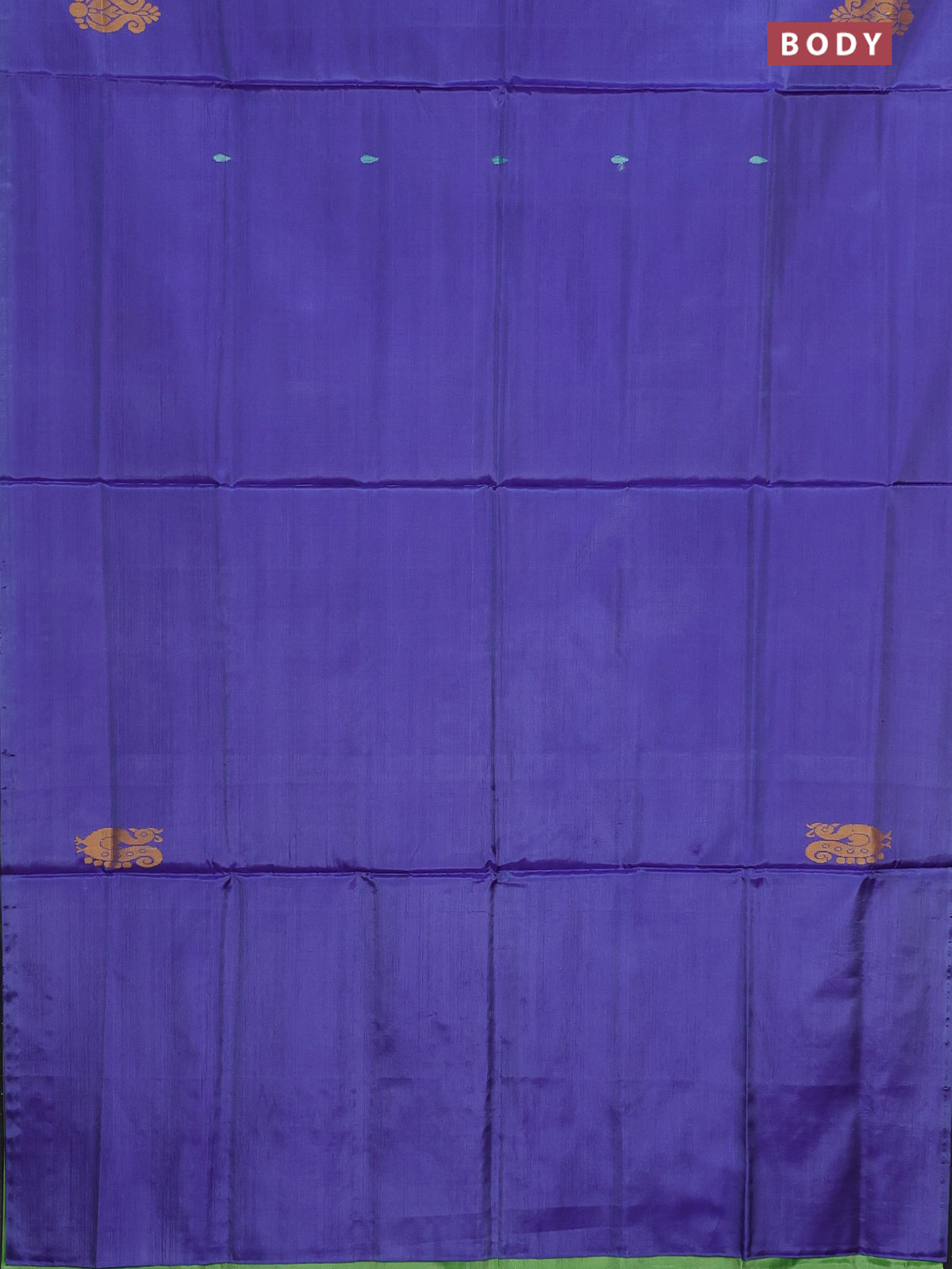 Banana pith saree violet shade and light green with thread woven buttas in borderless style
