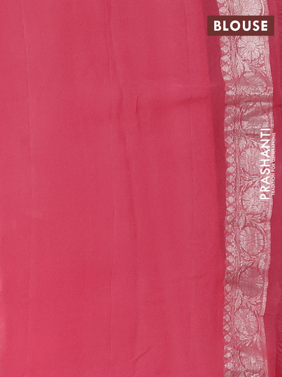 Banarasi chiffon silk saree peach pink with silver zari woven buttas and silver zari woven border