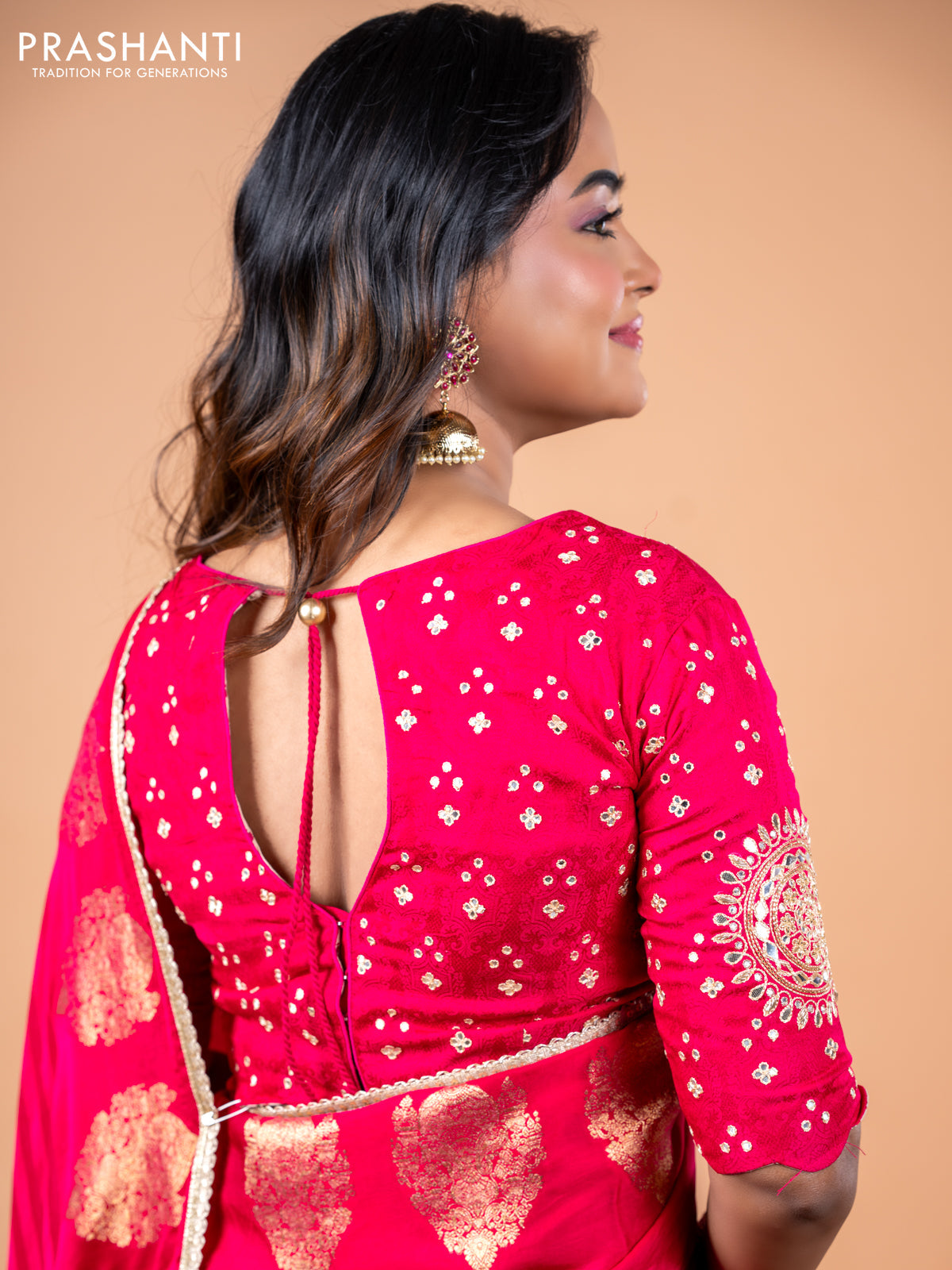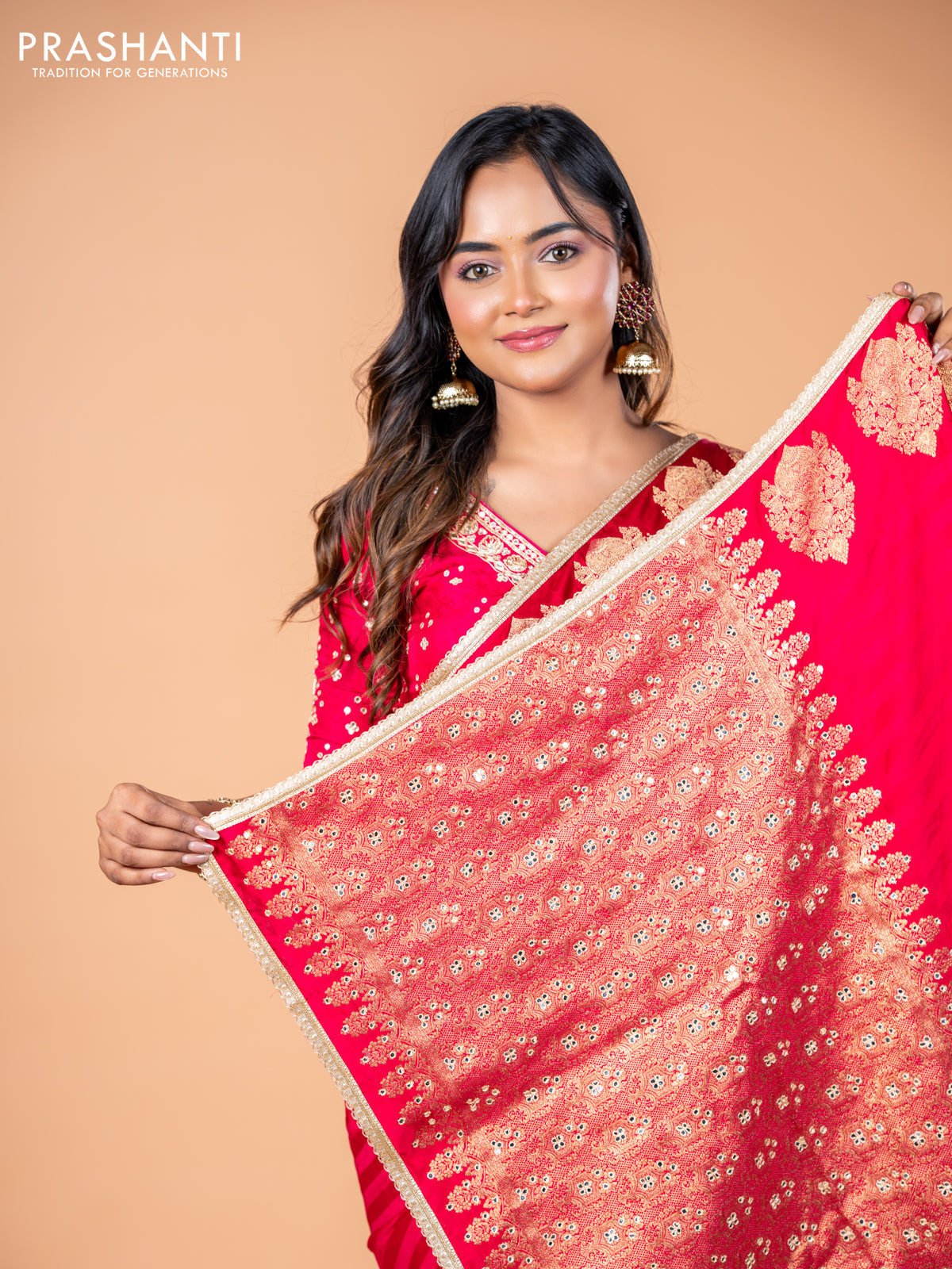 Banarasi crepe saree pink with stripes pattern and mirror work & banarasi style border