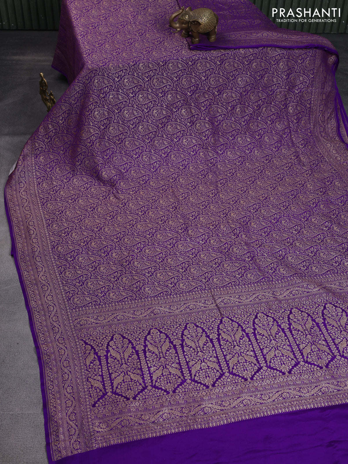 Banarasi crepe saree violet with allover thread & zari woven brocade weaves and woven border