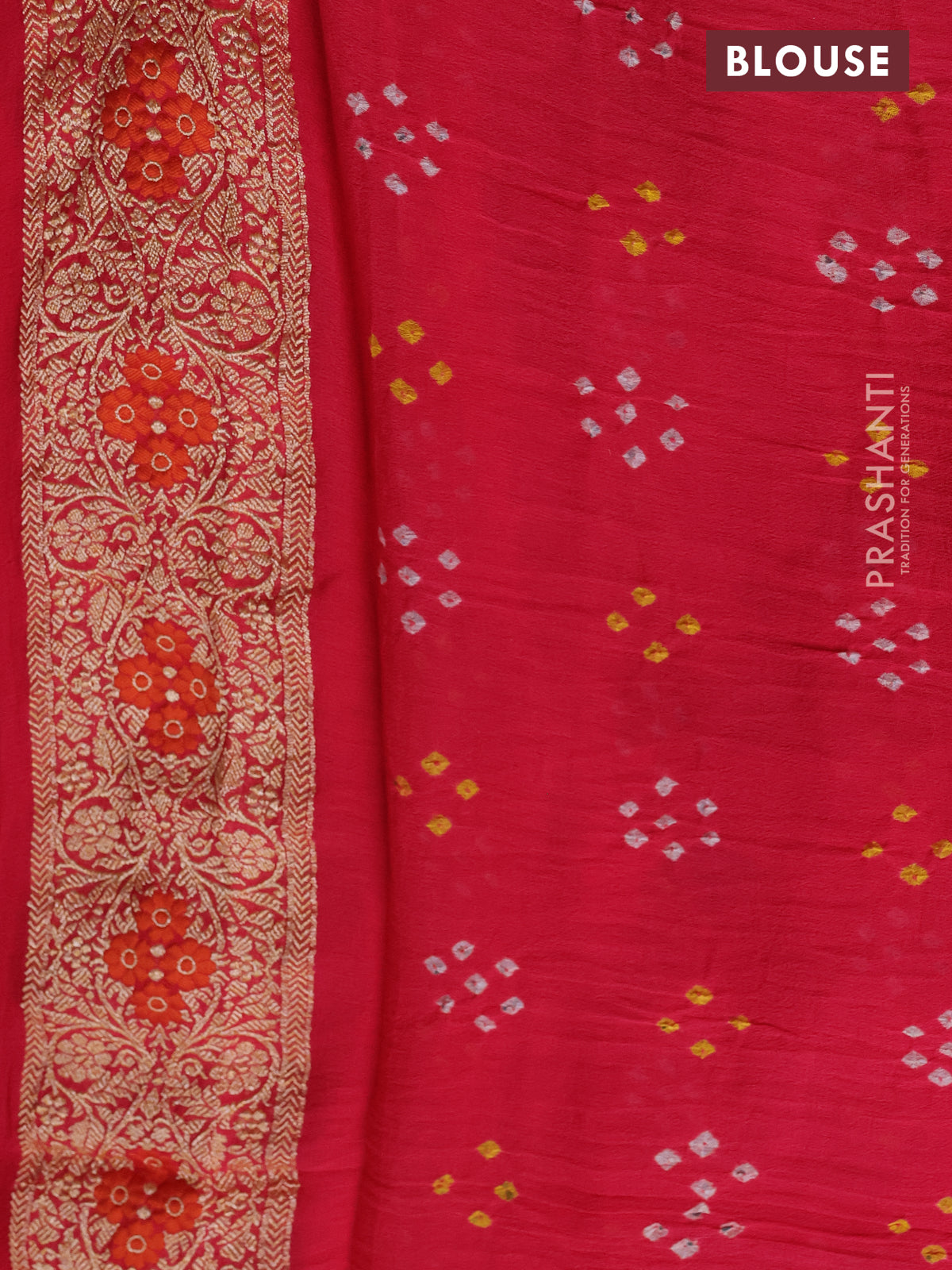 Banarasi georgette saree peach pink with bandhani prints & mina weaves and woven border