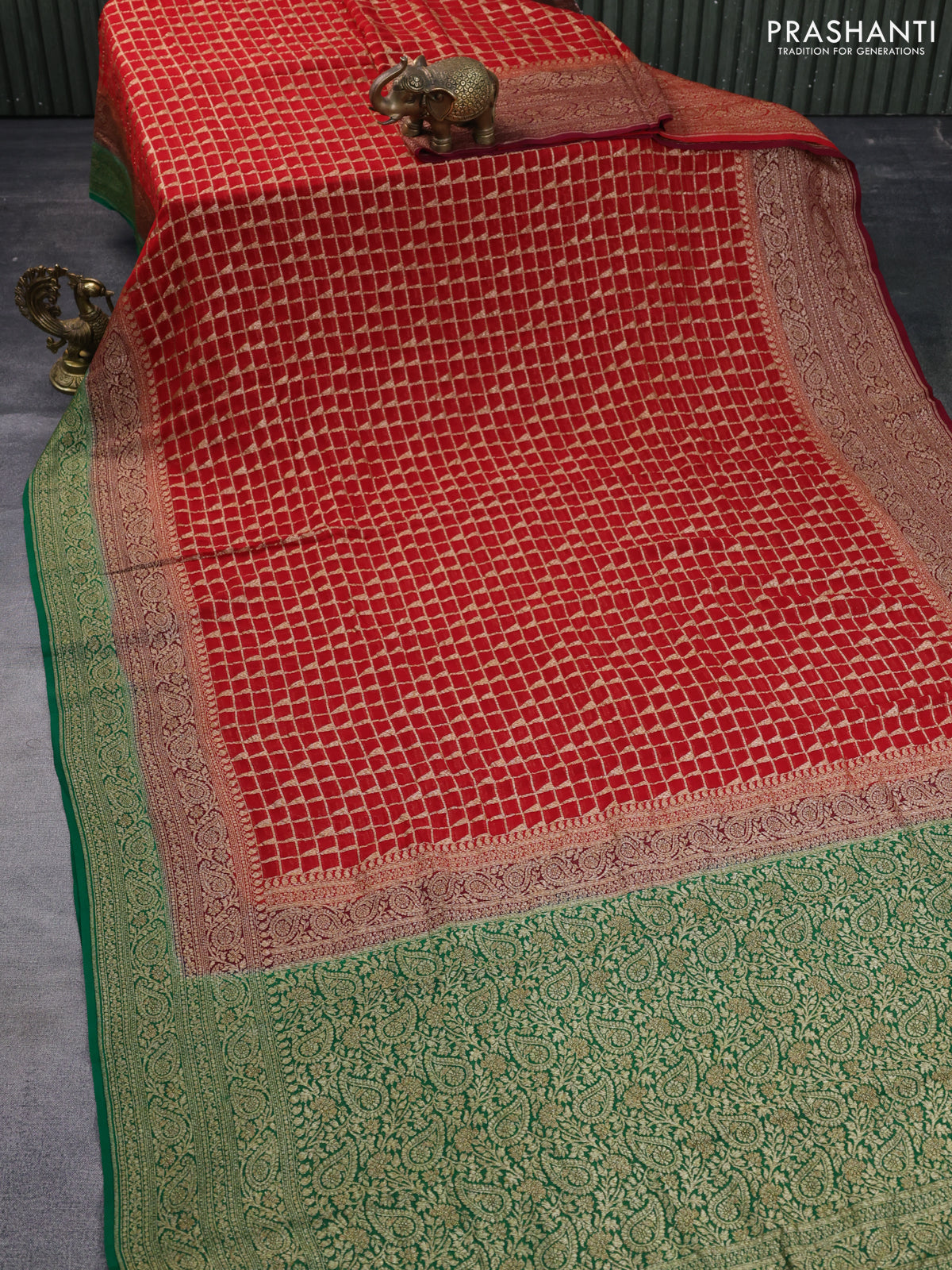 Banarasi georgette saree red and maroon green with allover thread weaves and woven border
