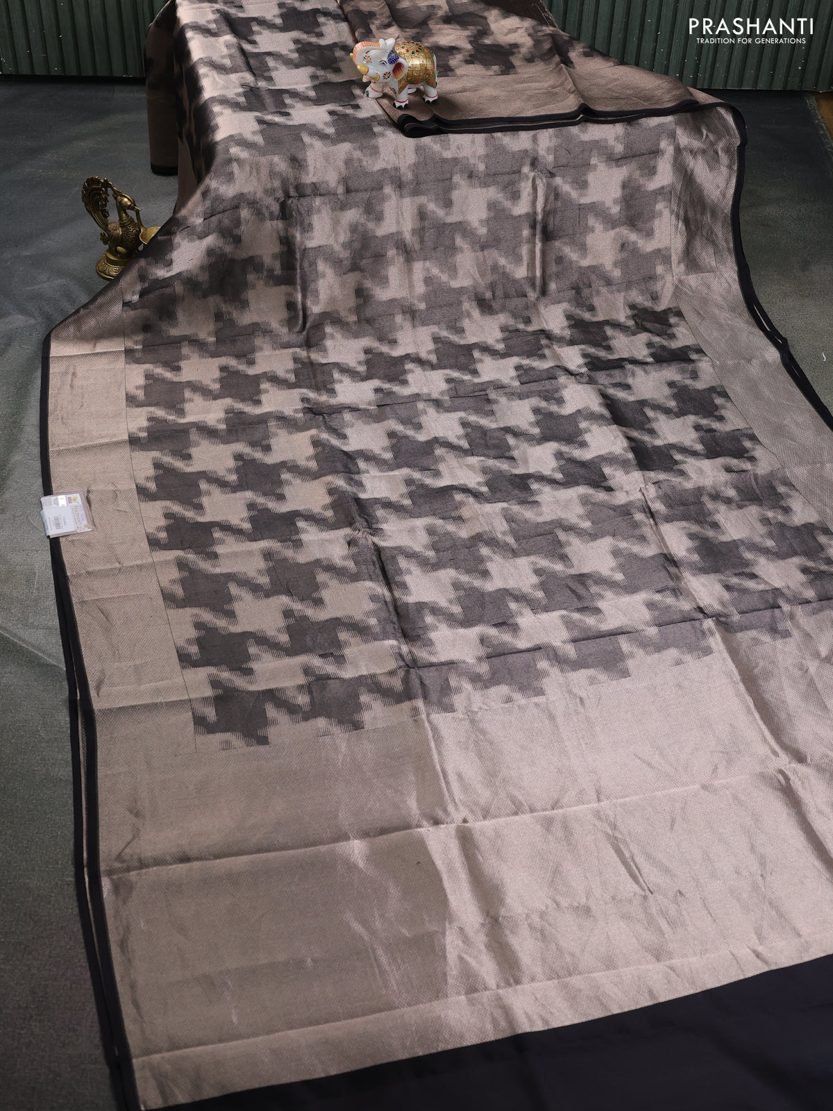 Banarasi katan silk saree black with allover silver zari woven brocade weaves and zari woven butta border