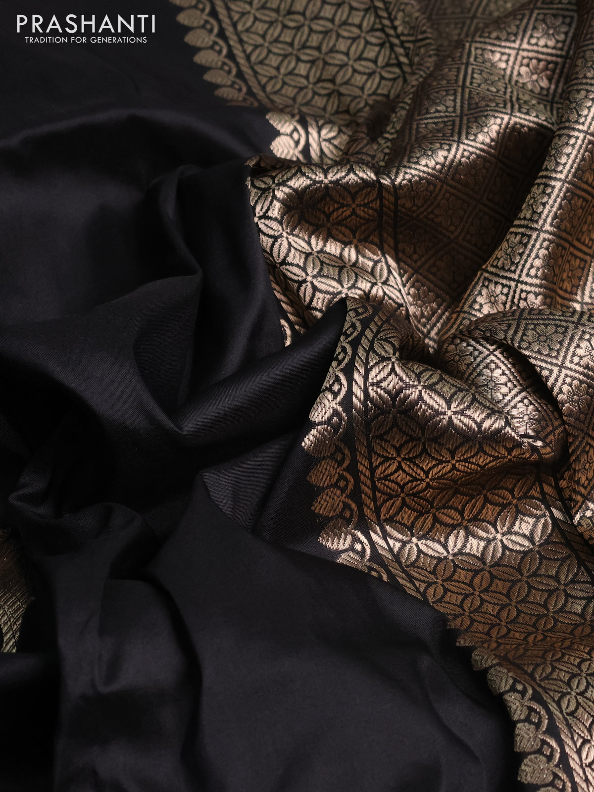 Banarasi katan silk saree black with zari woven floral buttas and zari woven border