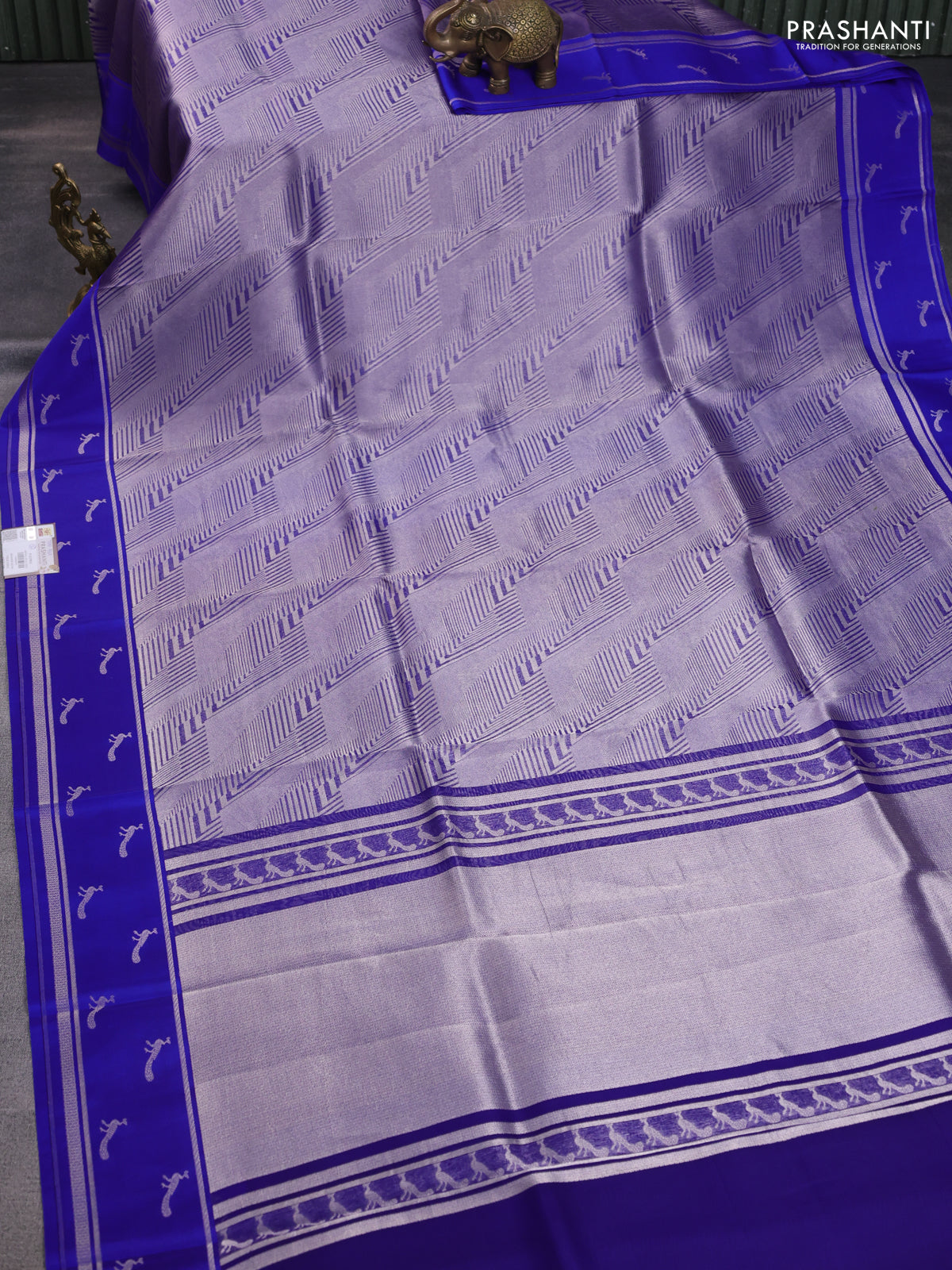 Banarasi katan silk saree blue with allover silver zari woven brocade weaves and zari woven butta border