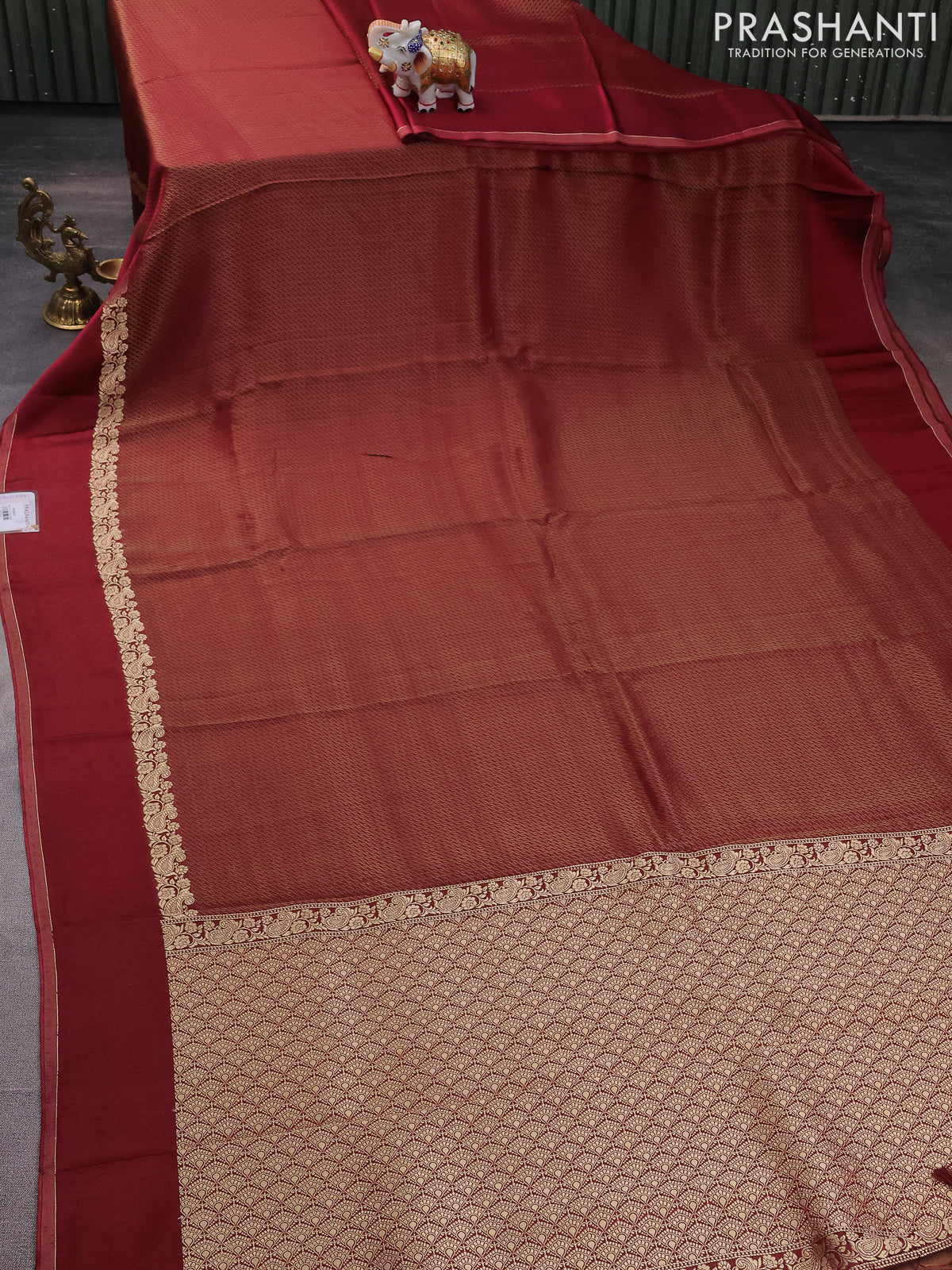 Banarasi mushru silk saree maroon with allover zari weaves and zari woven border