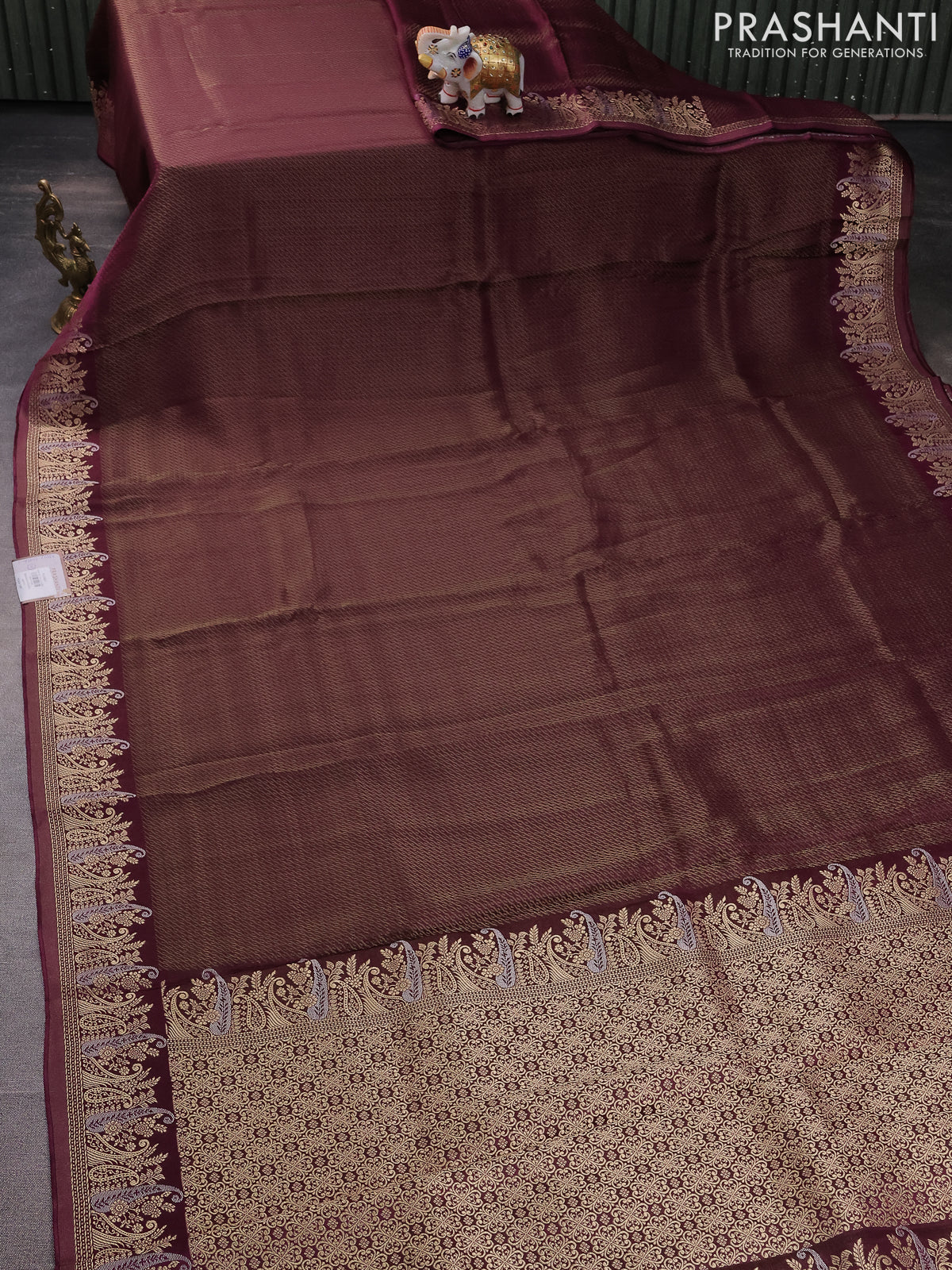 Banarasi mushru silk saree wine shade with allover zari weaves and zari woven border