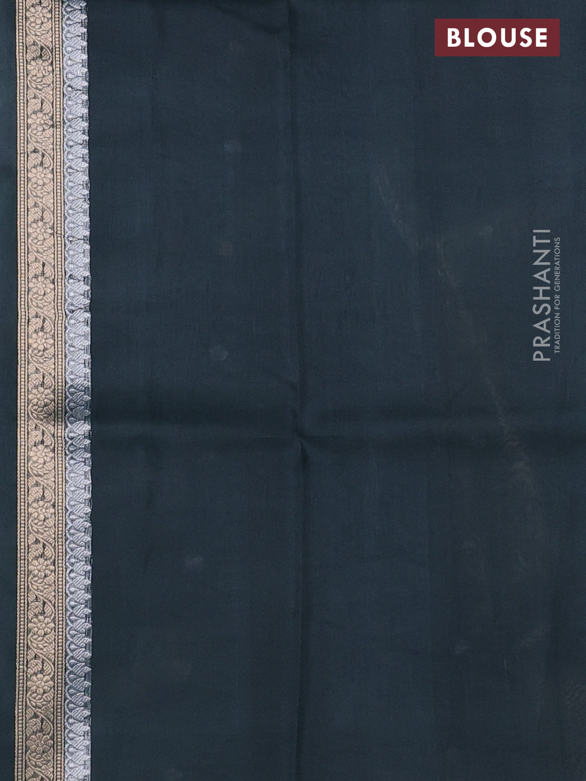 Banarasi organza silk saree greyish green with silver & gold zari weaves and zari woven piping boder