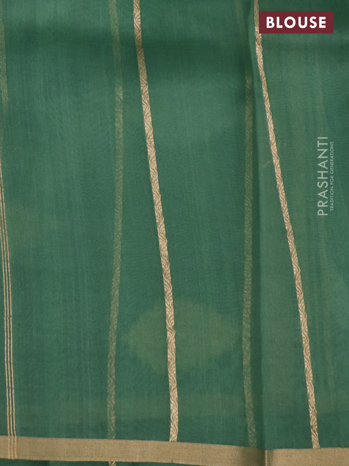 Banarasi organza silk saree pastel green with silver & gold zari weaves and zari woven piping border