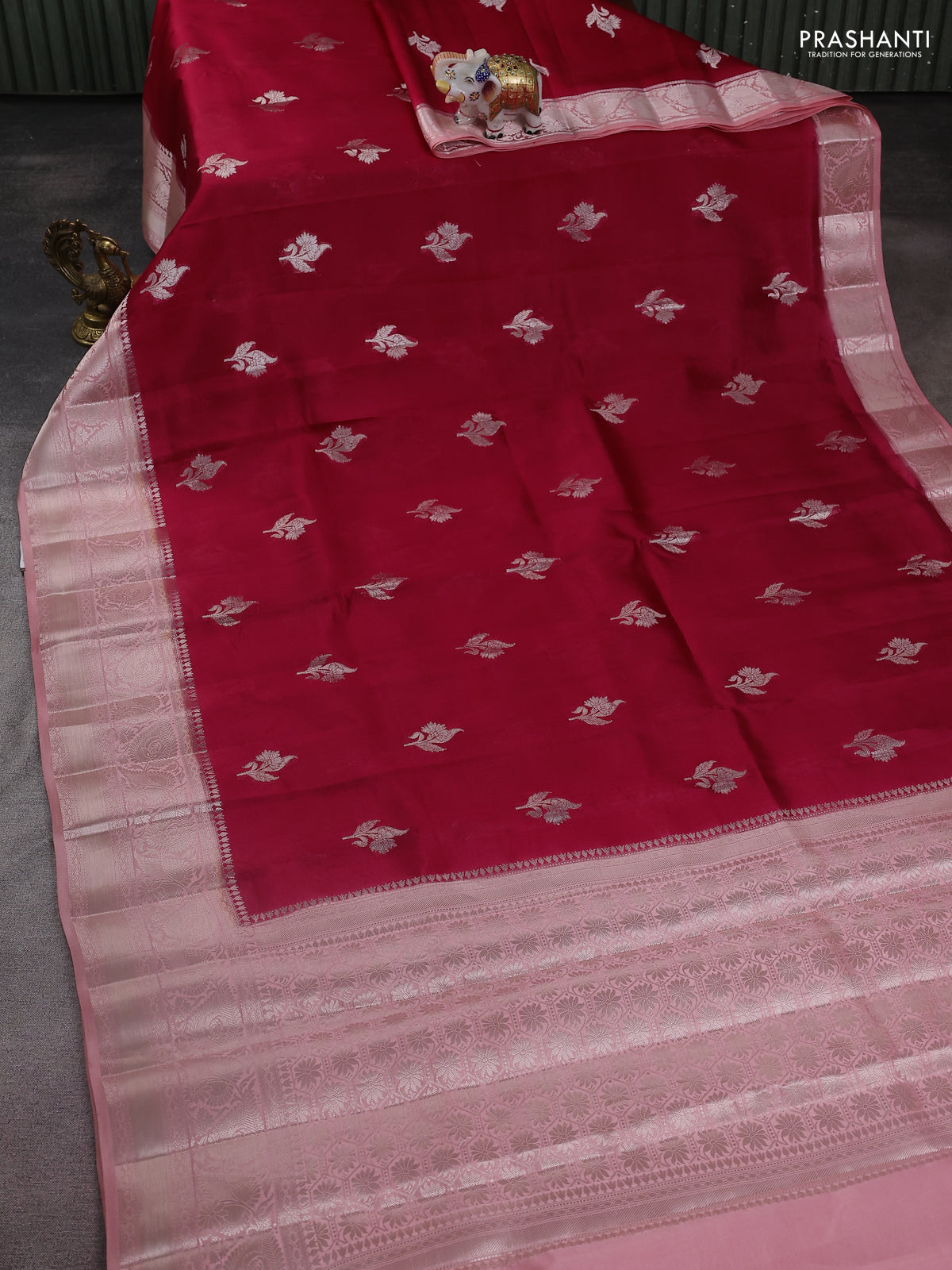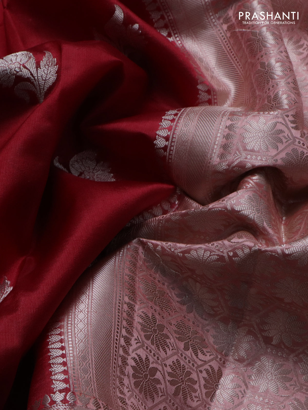 Banarasi poona silk saree red and peach shade with zari woven floral buttas and long zari woven border
