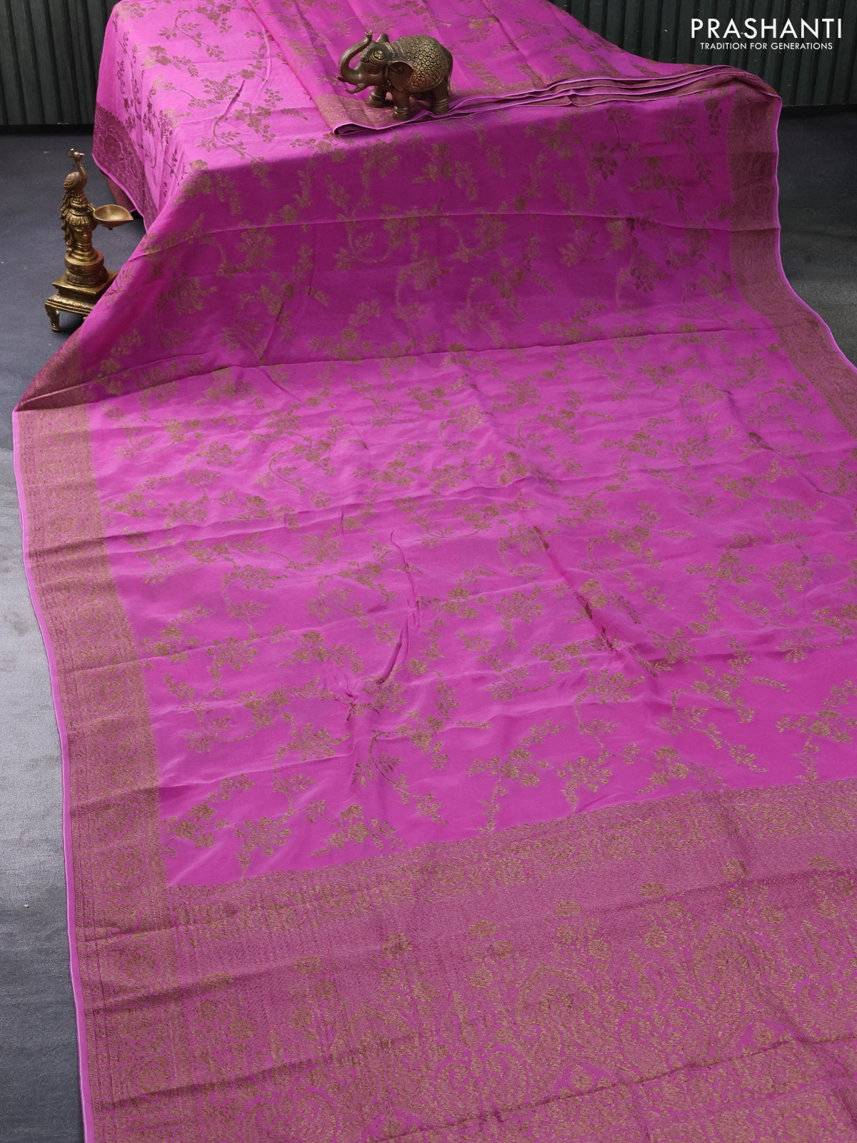 Banarasi semi crepe saree pink with allover thread & zari weaves and woven border