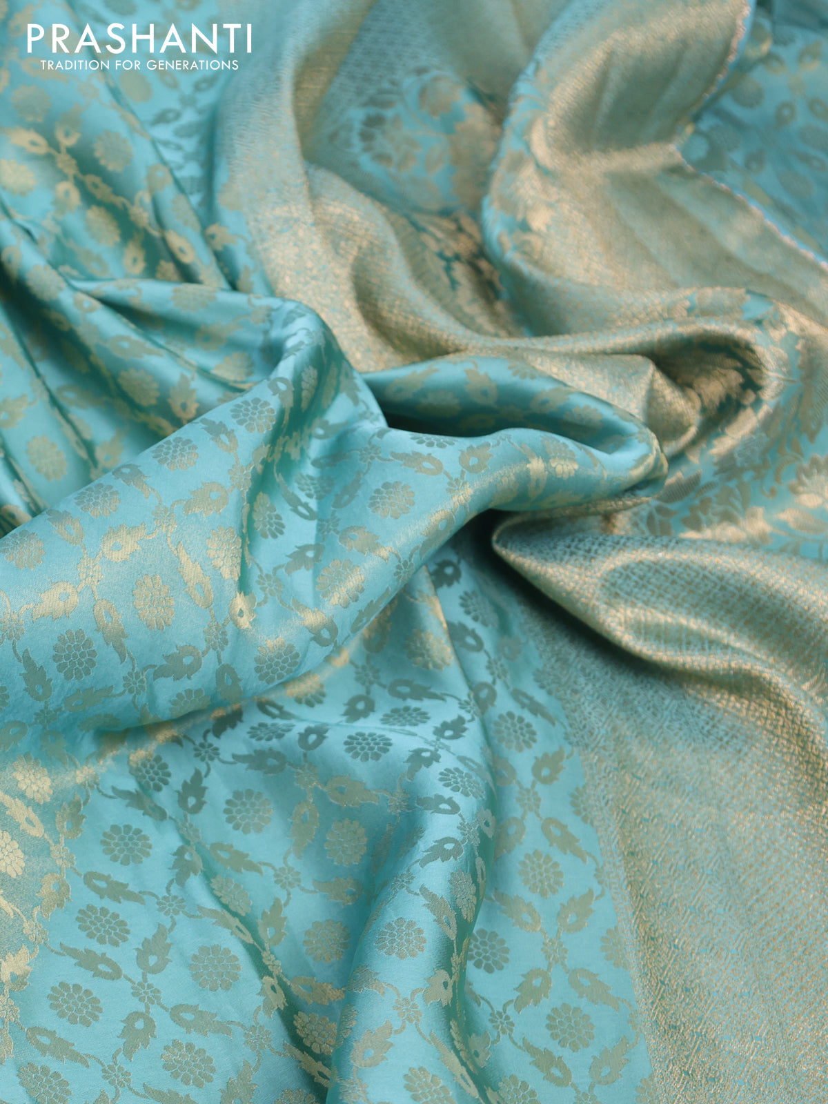 Banarasi semi crepe saree teal blue shade with allover zari woven brocade weaves and lace work border