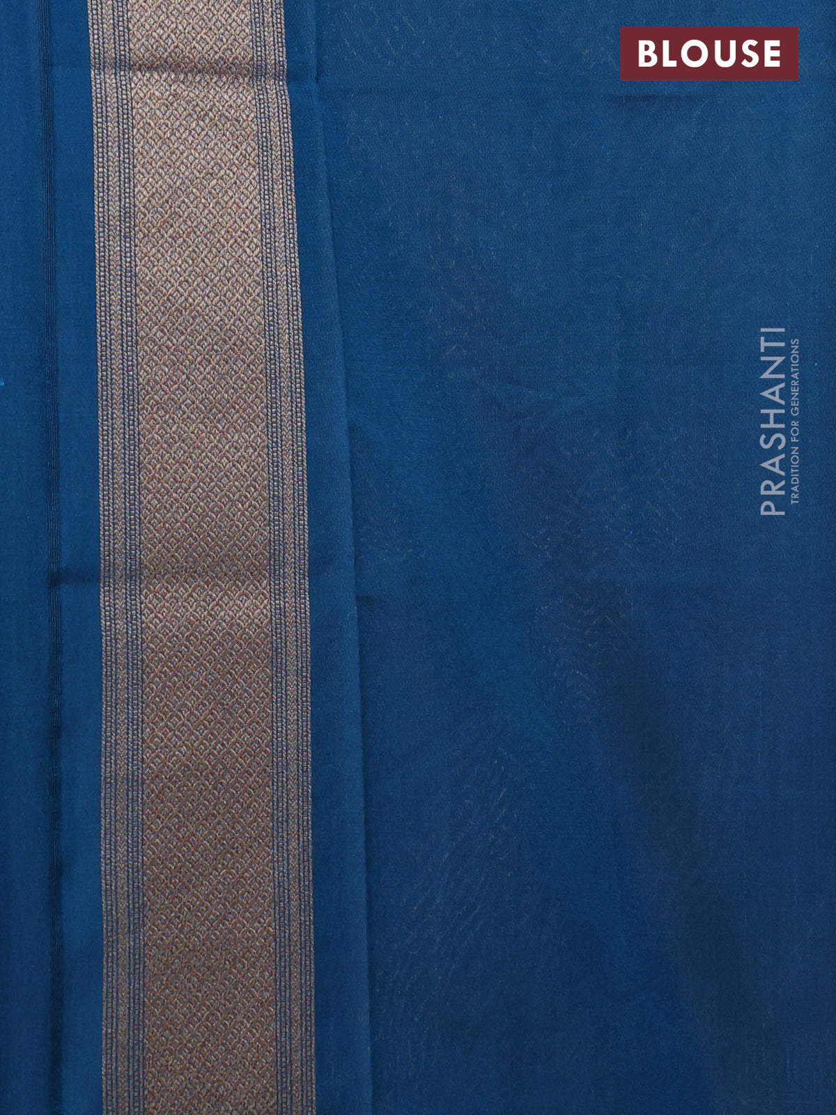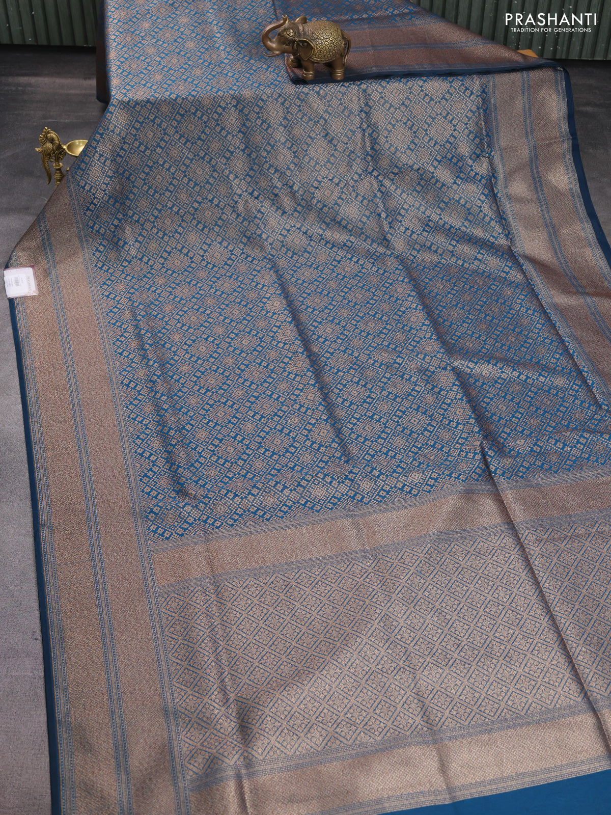 Banarasi semi katan saree peacock blue with allover thread & zari weaves and woven border