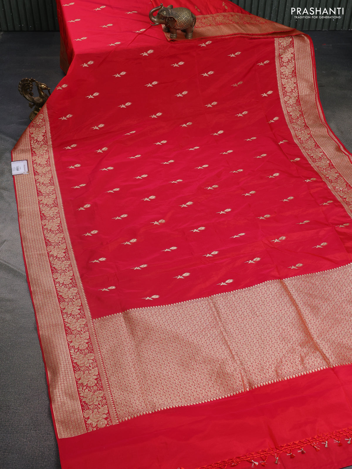 Banarasi semi katan silk saree dual shade of reddish pink with floral zari woven buttas and zari woven border