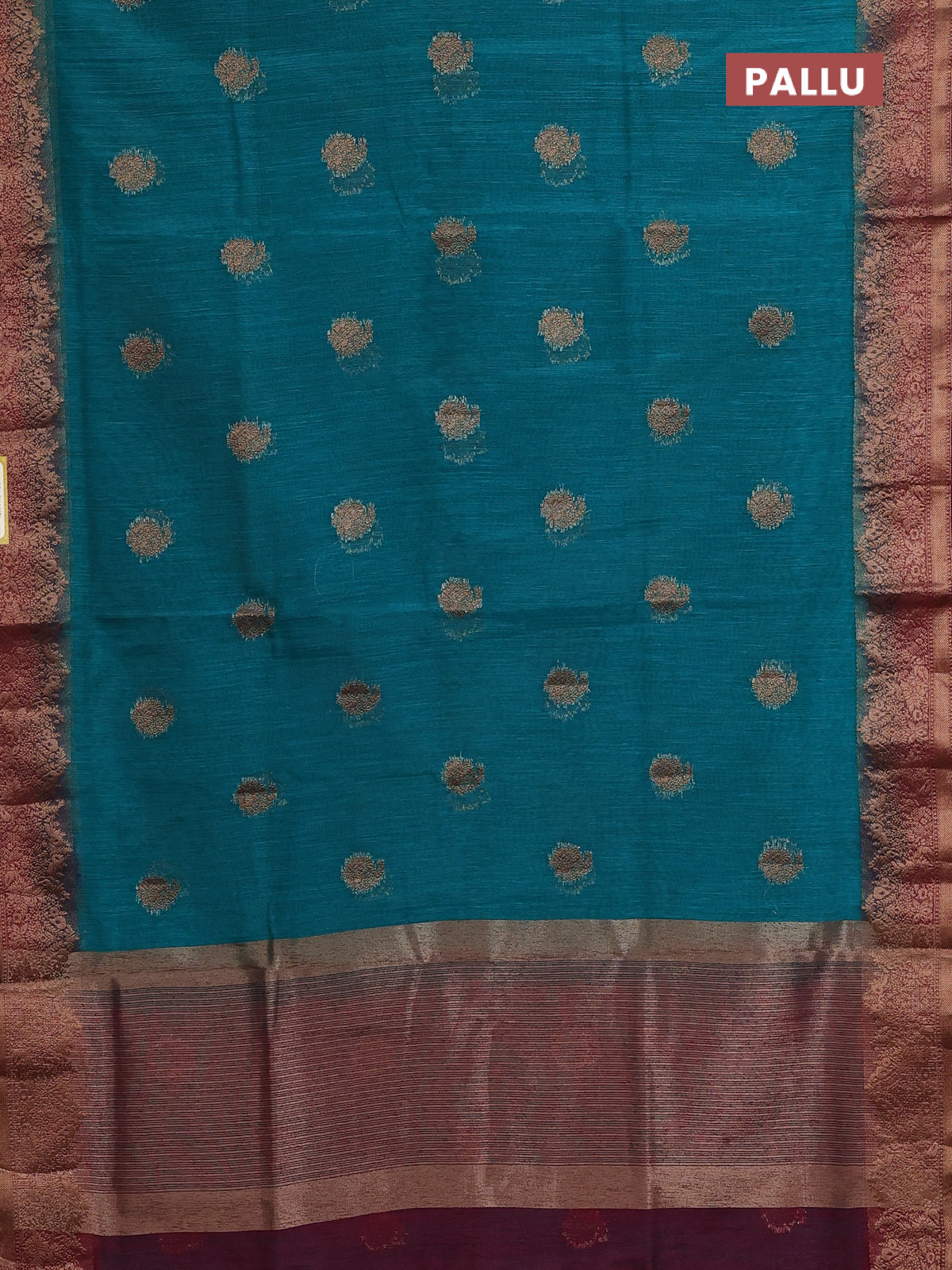Banarasi semi matka saree teal green and wine shade with thread & zari woven buttas and banarastyle border