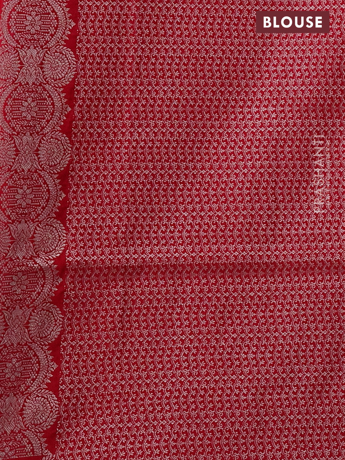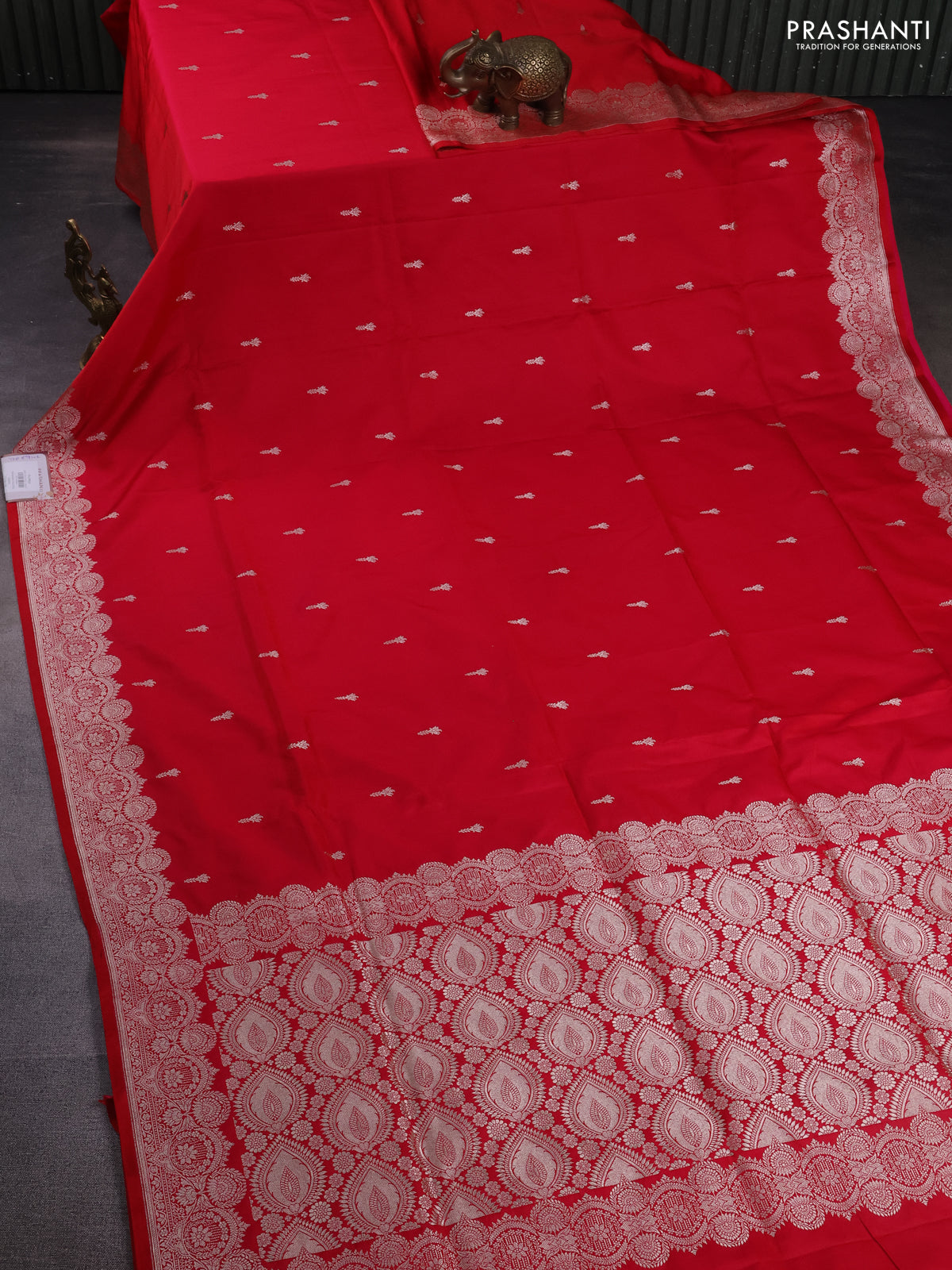 Banarasi semi mushru silk saree reddish pink with allover zari woven buttas and zari woven border