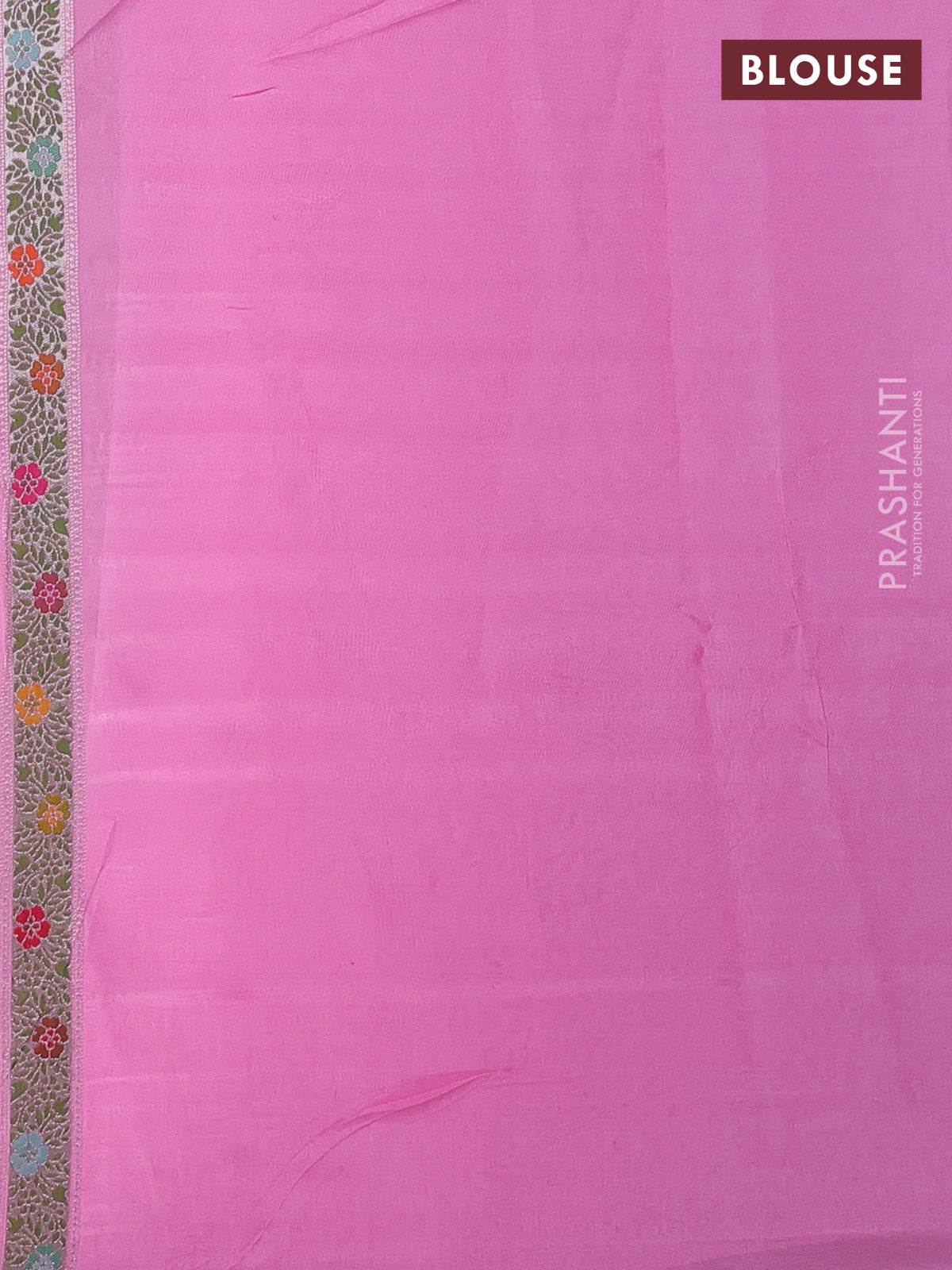 Banarasi semi raw silk saree light pink with allover silver zari woven paithani weaves and woven border