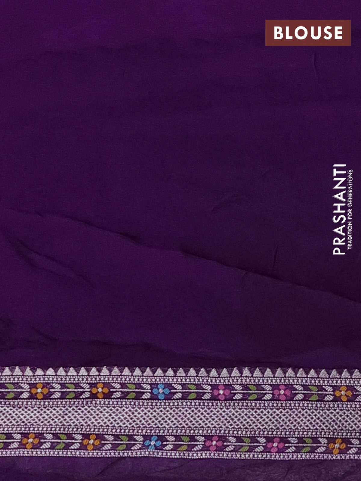 Banarasi semi raw silk saree violet with allover silver zari woven brocade weaves and floral design paithani border