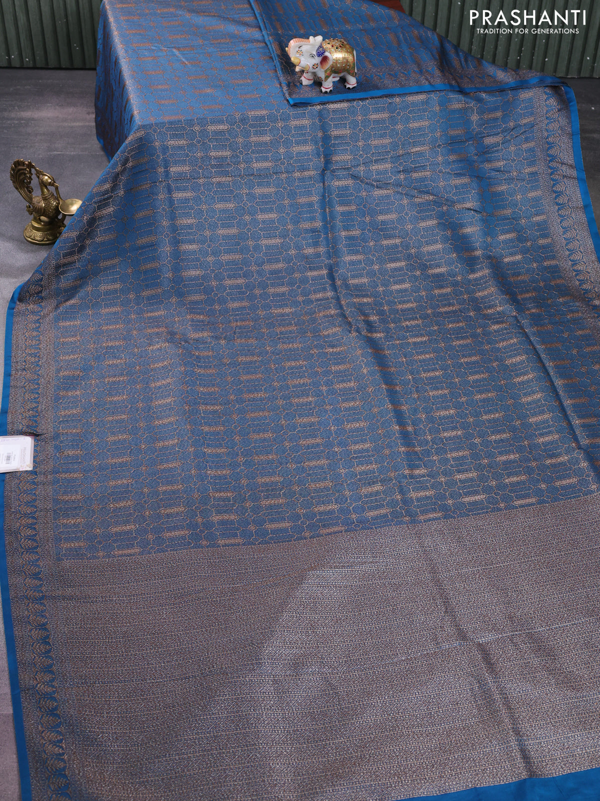 Banarasi semi silk saree cs blue with allover thread & zari weaves and woven border