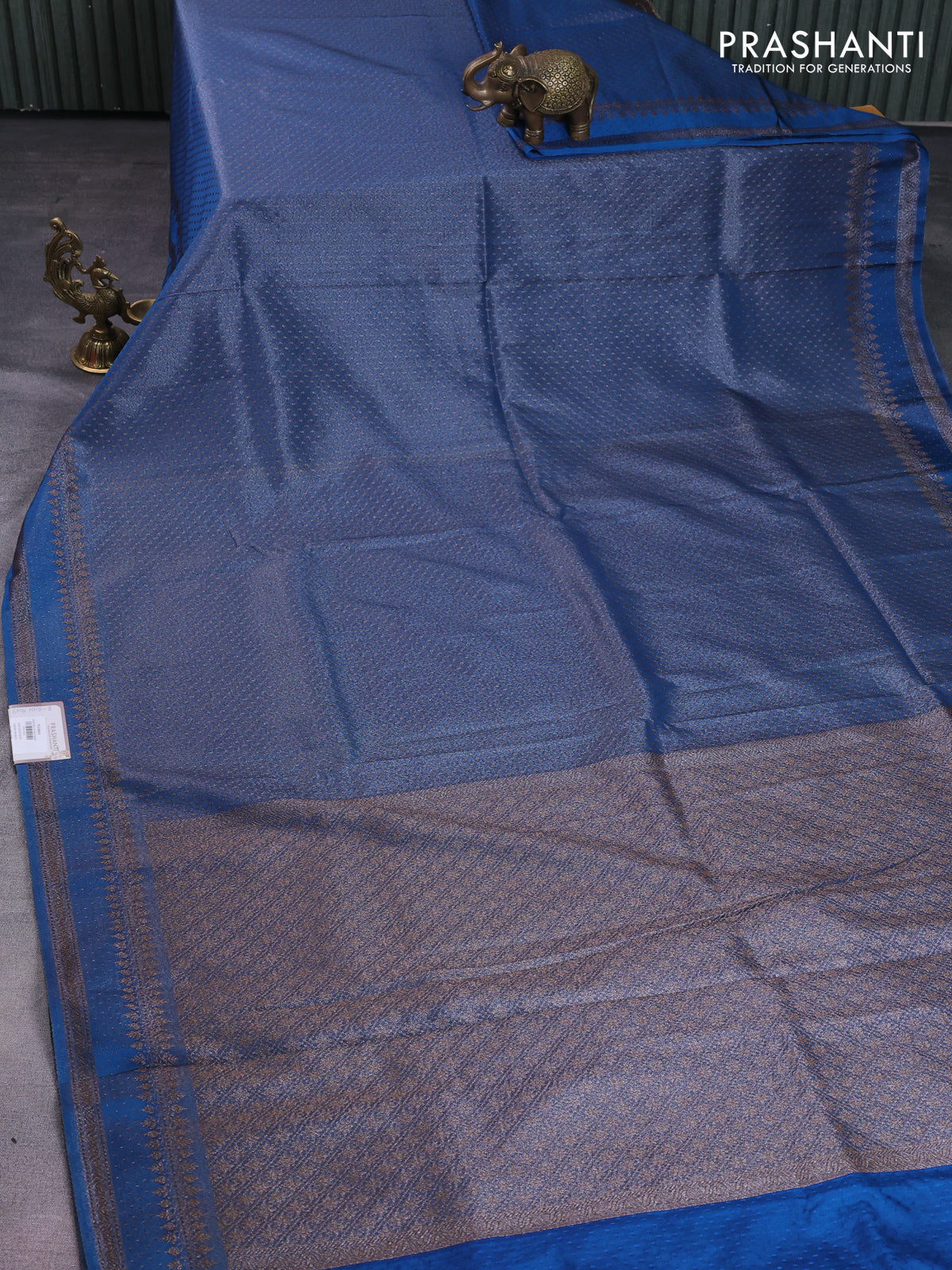 Banarasi semi silk saree cs blue with allover thread & zari woven butta weaves and woven border