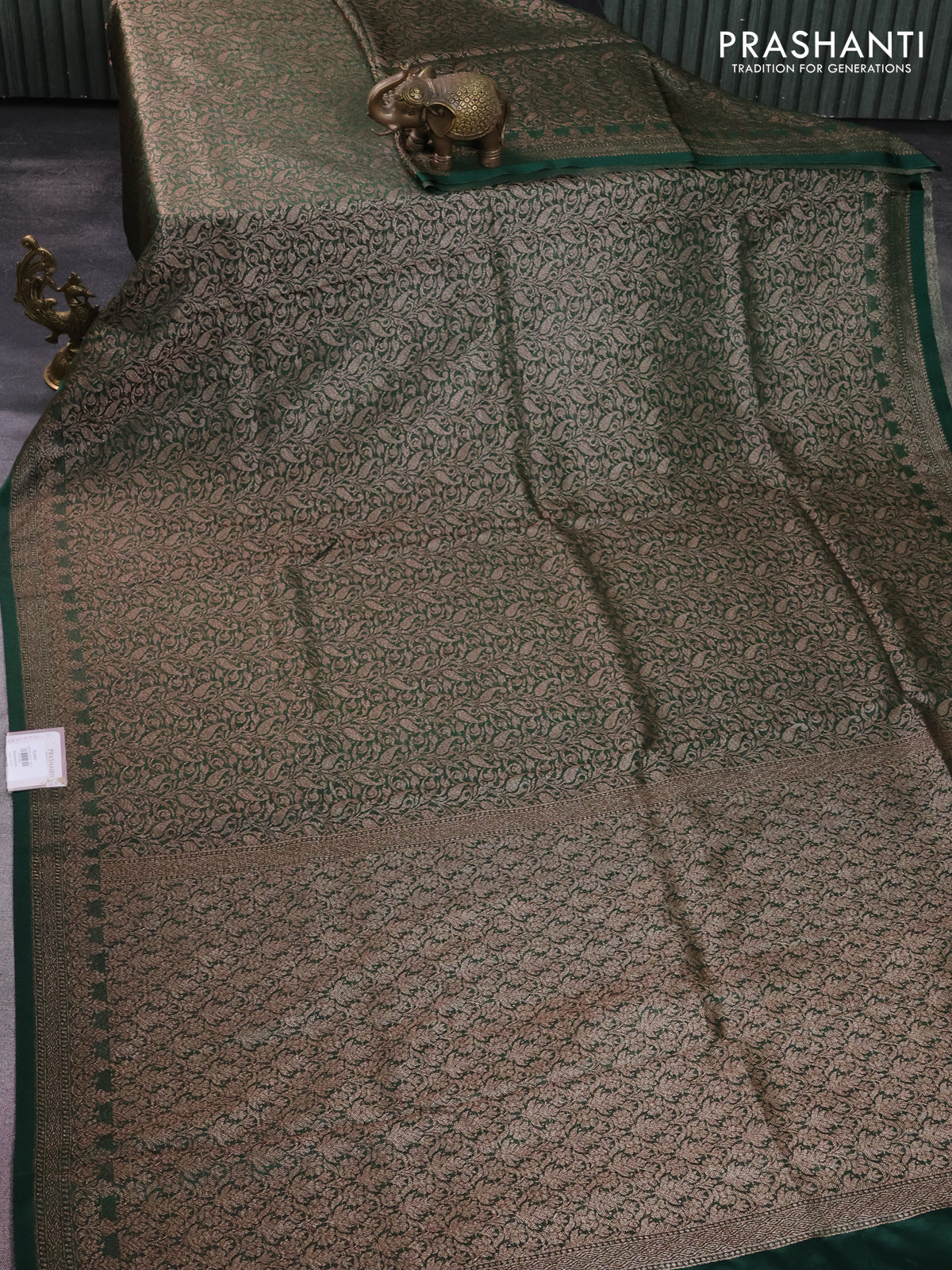 Banarasi semi silk saree green with allover thread & zari weaves and woven border