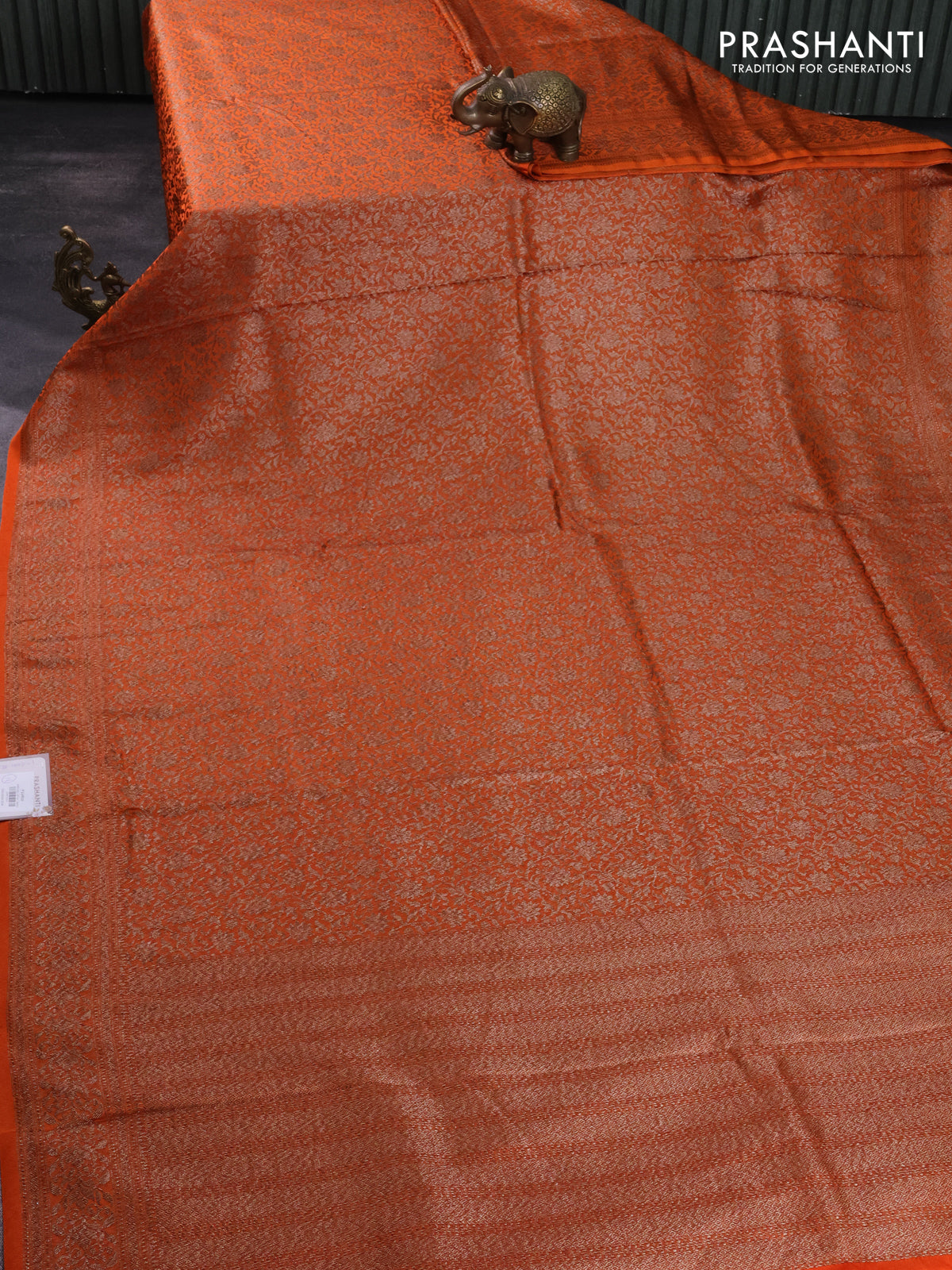 Banarasi semi silk saree orange with allover thread & zari woven butta weaves and woven border