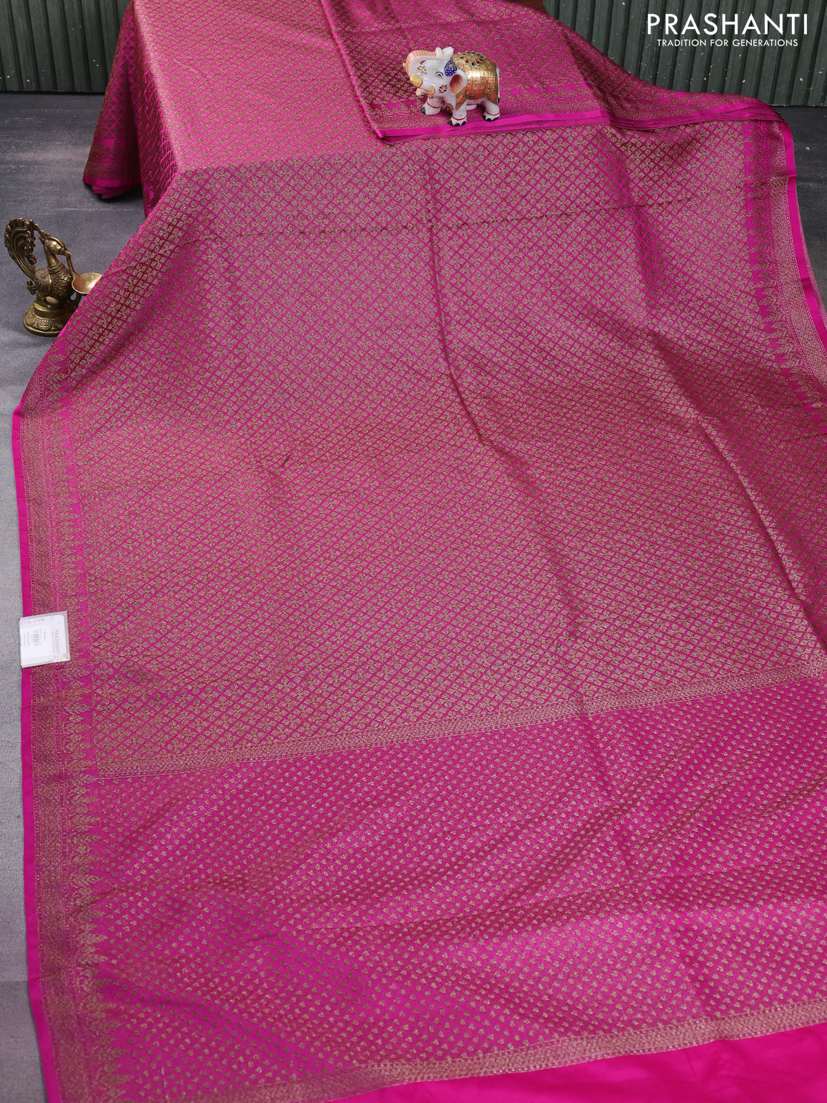Banarasi semi silk saree pink with allover thread & zari weaves and woven border