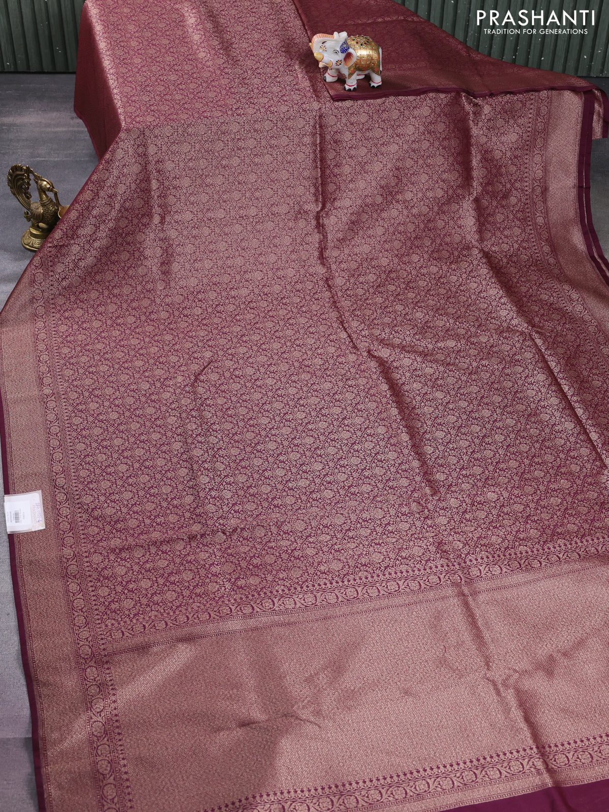 Banarasi semi silk saree wine shade with allover thread & zari weaves and woven border
