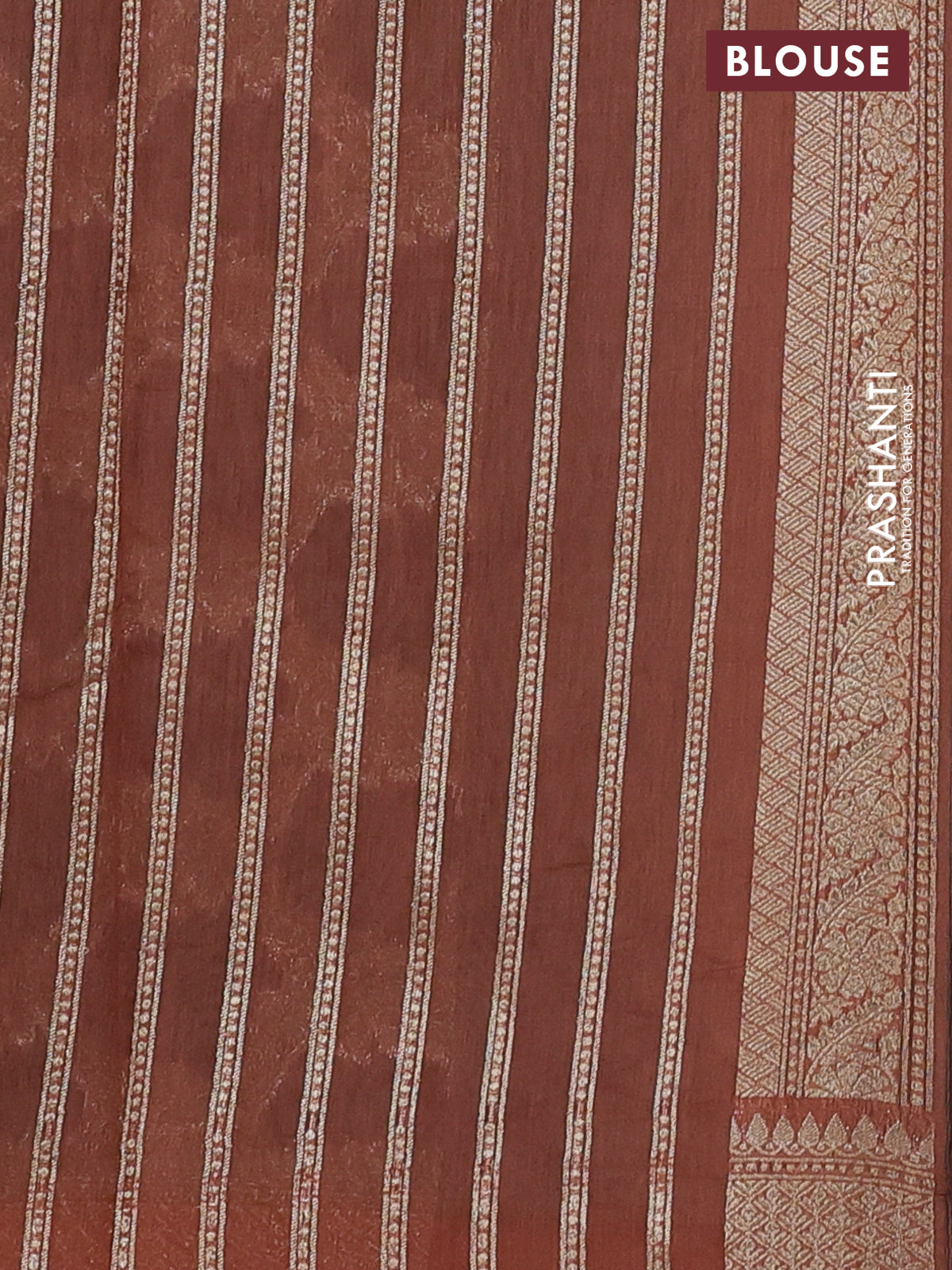 Banarasi silk cotton saree pastel blue and rust shade with allover thread & zari weaves and woven border