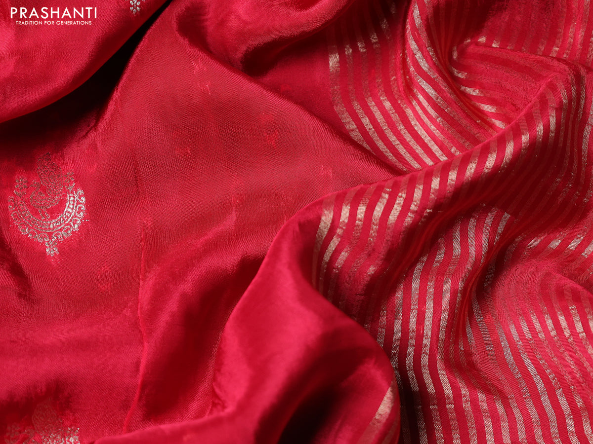 Banarasi silk saree red and green with annam zari woven buttas and zari woven border