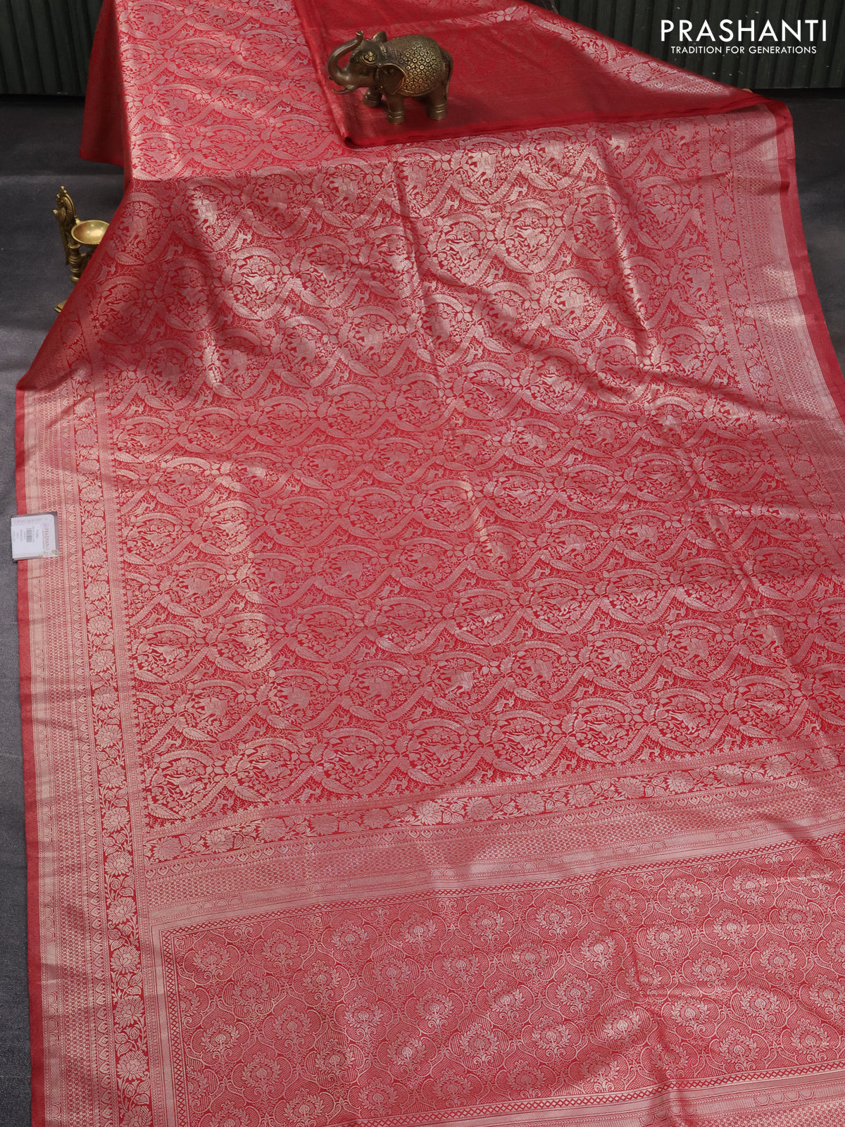Banarasi silk saree red with allover silver zari woven brocade weaves and silver zari woven border