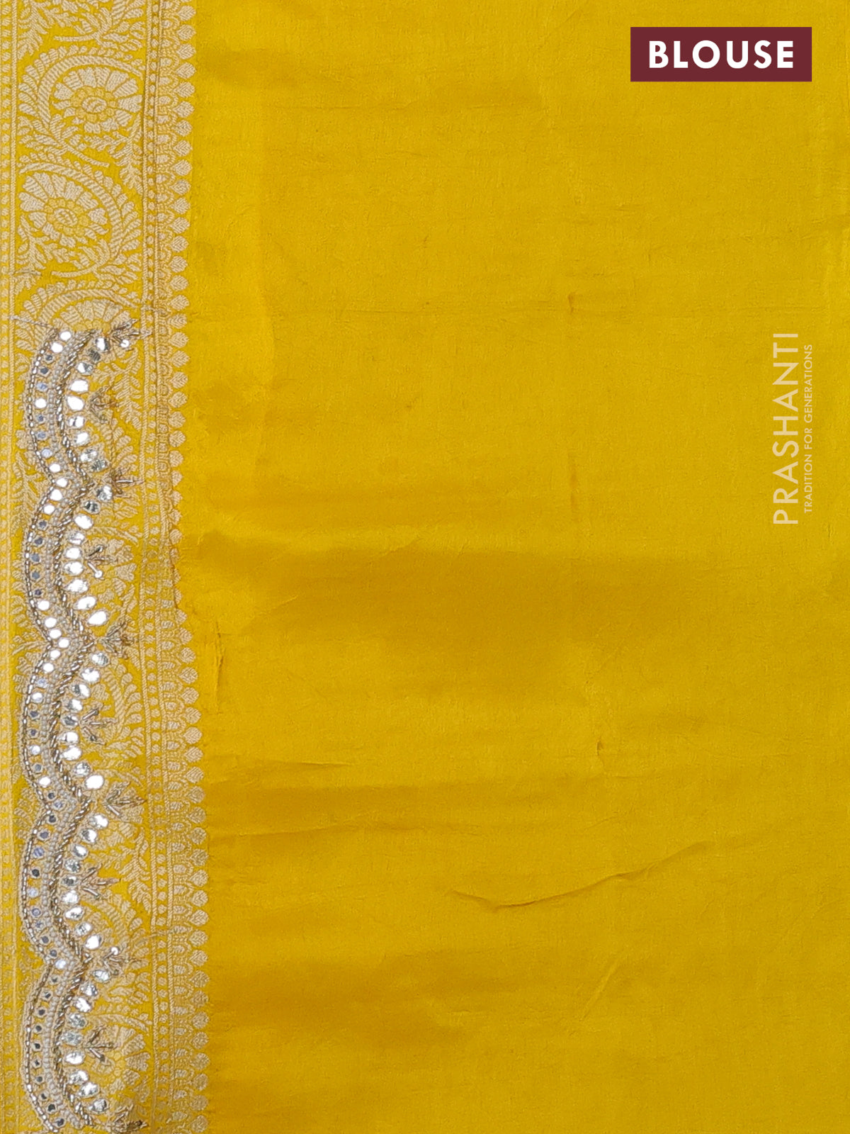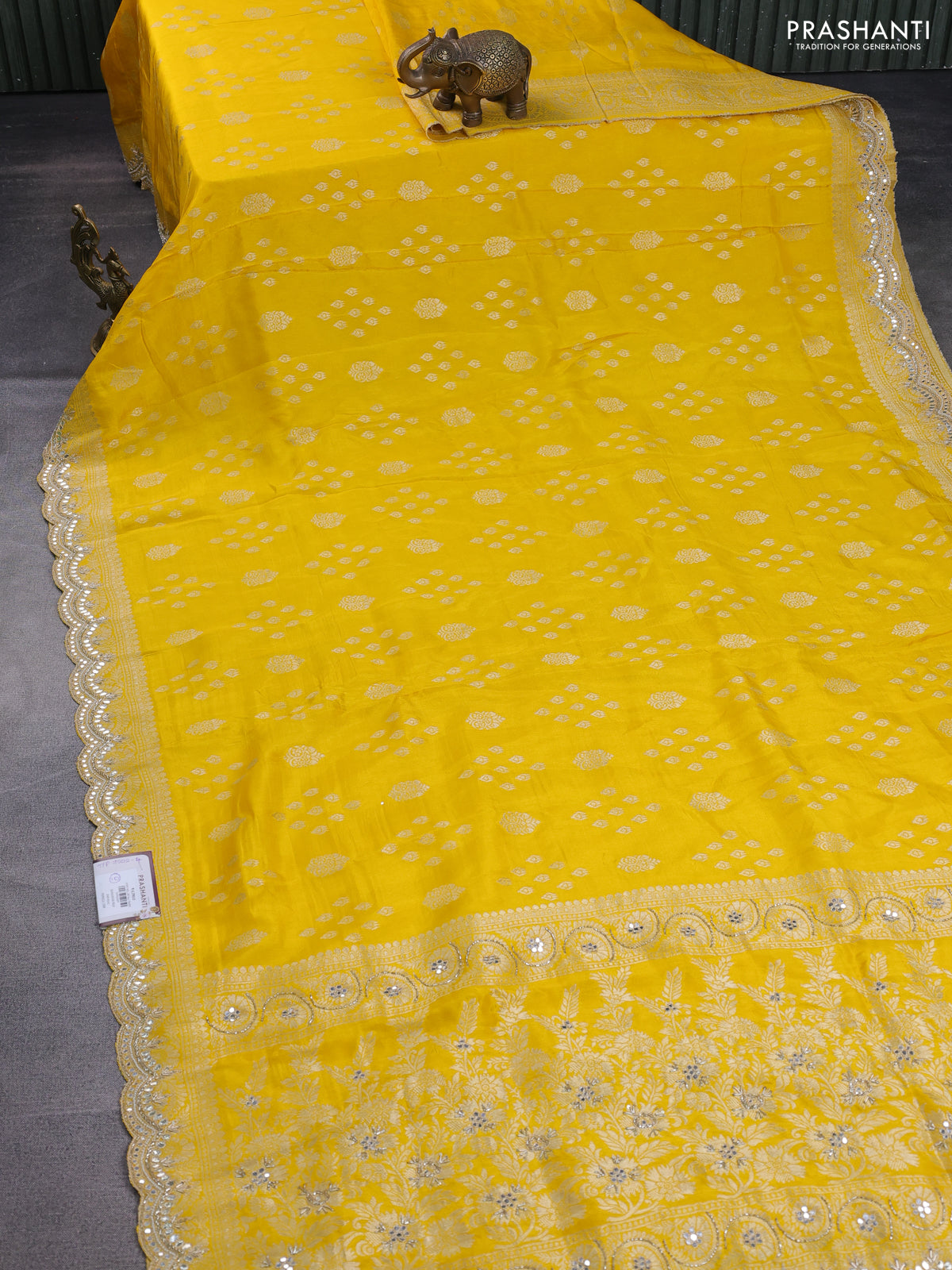 Banarasi silk saree yellow with allover zari woven butta weaves and gotapatti work border