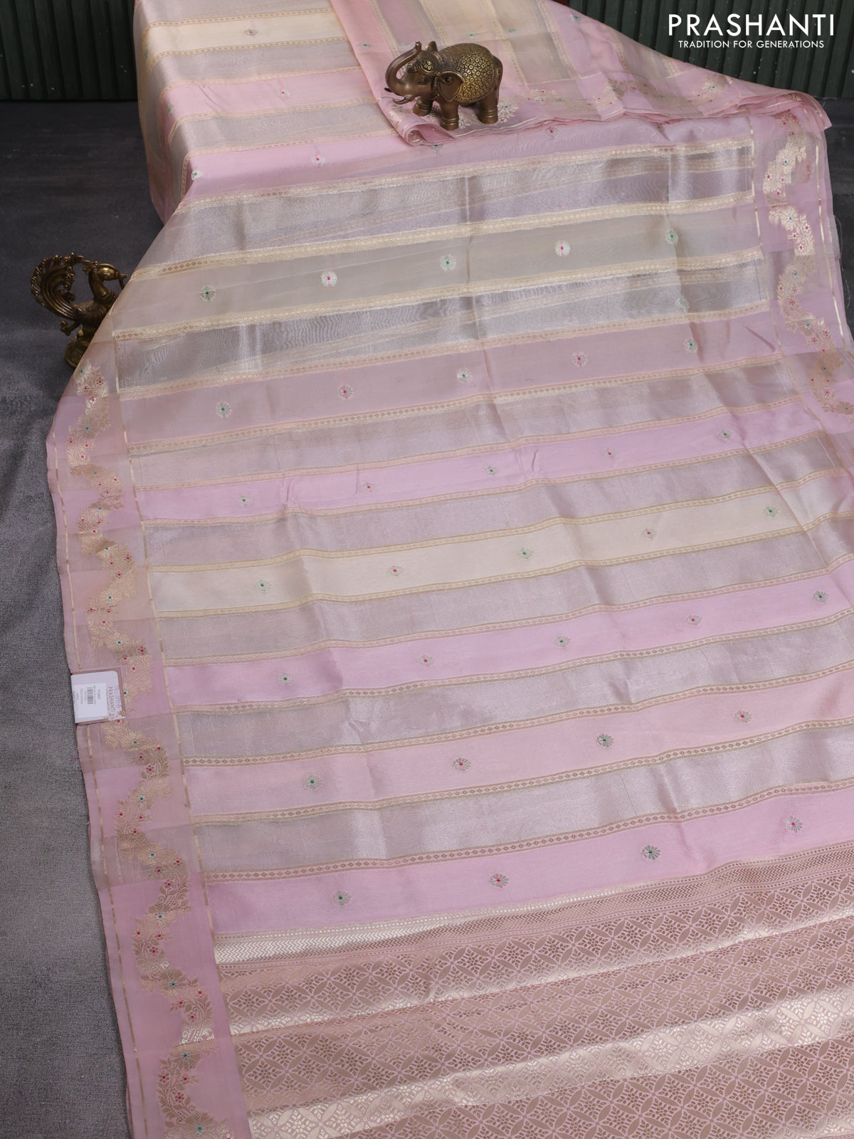 Banarasi tissue semi silk saree sandal and mild peach pink with zari weaves & buttas and zari woven border
