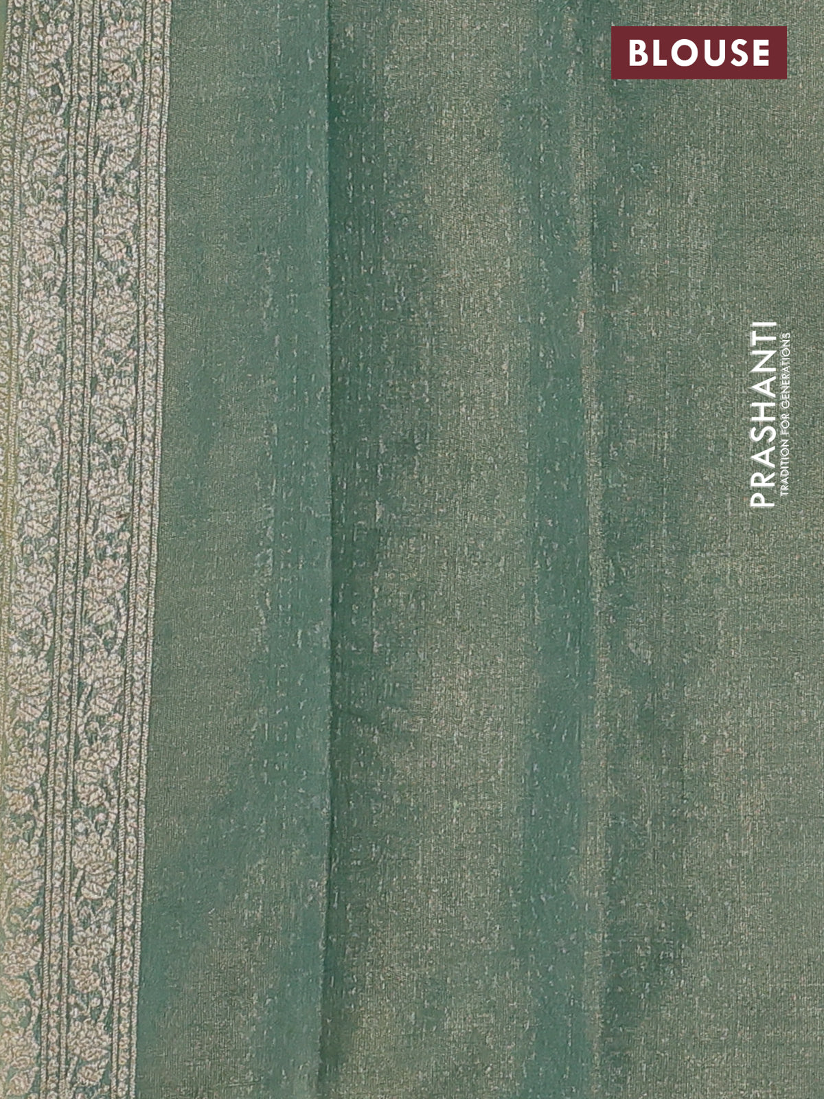 Banarasi tissue silk cotton saree mustard yellow and pastel green with allover thread & zari woven butta weaves and woven border