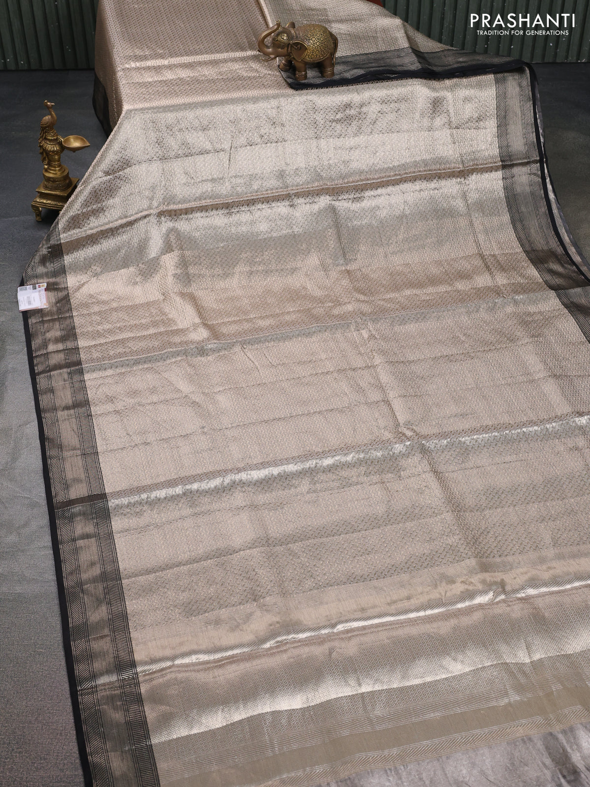 Banarasi tissue silk saree grey and black with allover zari woven brocade weaves and zari woven border